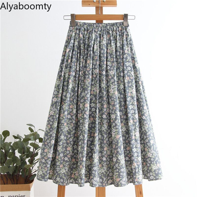 送料無料୨♥୧ スプリングサマーレディースミディスカート ウェストフローラルプリントロングプリーツ コットン 大人ガーリー スウィート キュート カジュアル 春物 夏物 花柄 AOS10459914347