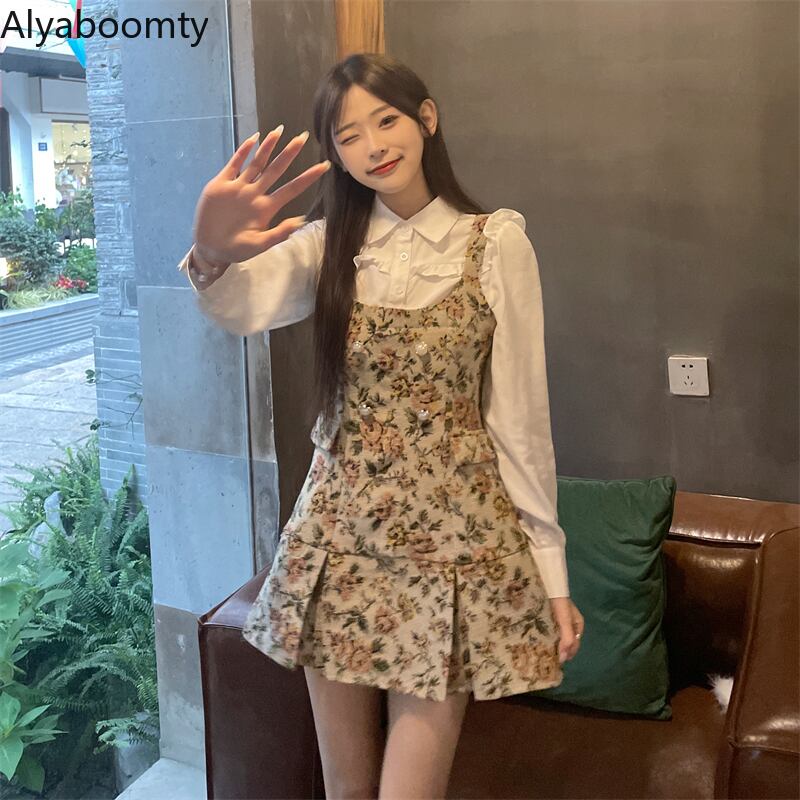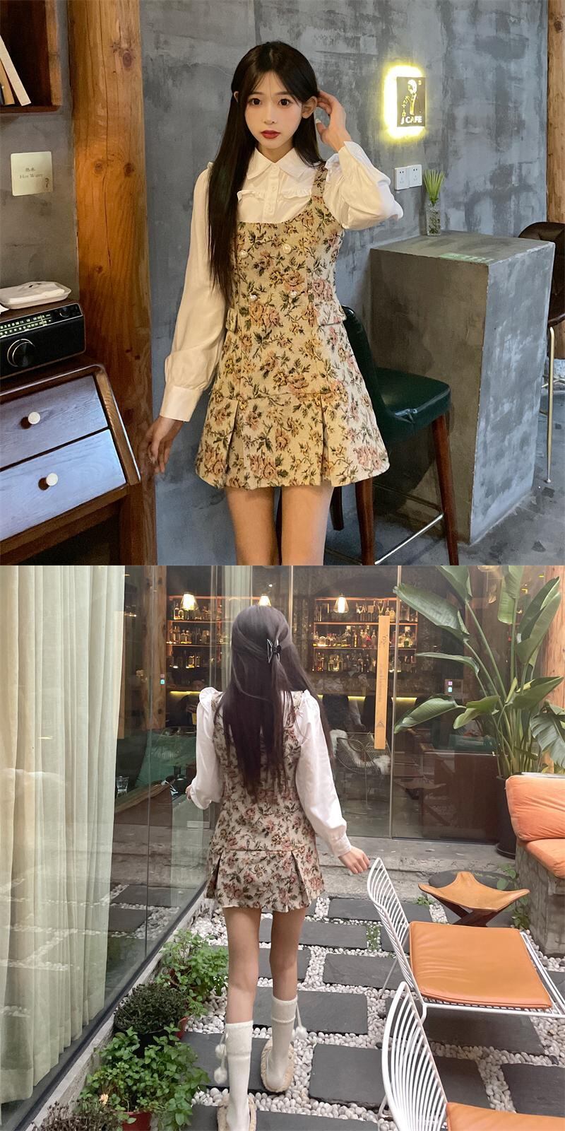 送料無料୨♥୧ スタイルスプリングオータムレディースドレス カラーパッチワークフローラルプリント柄シャツ 長袖スリーブミニ ロング 大人ガーリー スウィート キュート カジュアル 春物 秋物 花柄 AOS88310696862