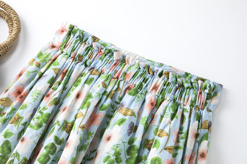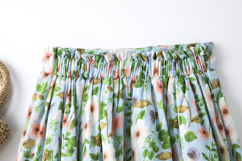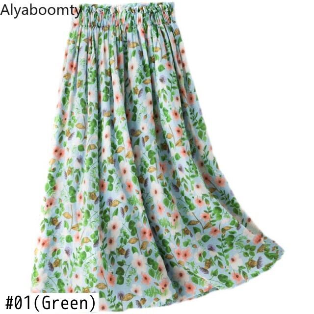 送料無料୨♥୧ スプリングサマーレディースAラインスカート ウェストグリーンフローラル コットン 大人ガーリー スウィート キュート カジュアル 春物 夏物 花柄 AOS58917830592