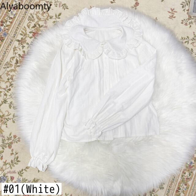 送料無料୨♥୧ スタイルスプリングオータムレディーストップス カラーホワイトバギーブラウス 長袖スリーブシャツ ロング 大人ガーリー スウィート キュート カジュアル 春物 秋物 AOS31858237717