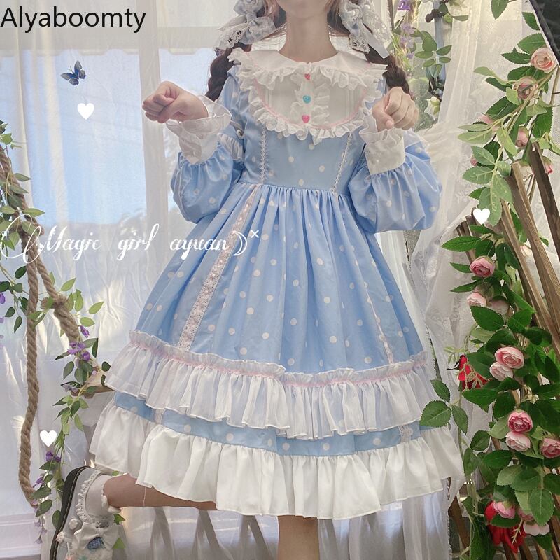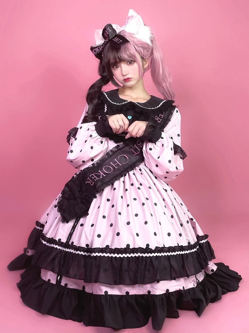 送料無料୨♥୧ スタイルスプリングオータムレディースドレス カラーブルーブラック水玉フリル ピンク ラッフル 大人ガーリー スウィート キュート カジュアル 春物 秋物 AOS96977678222