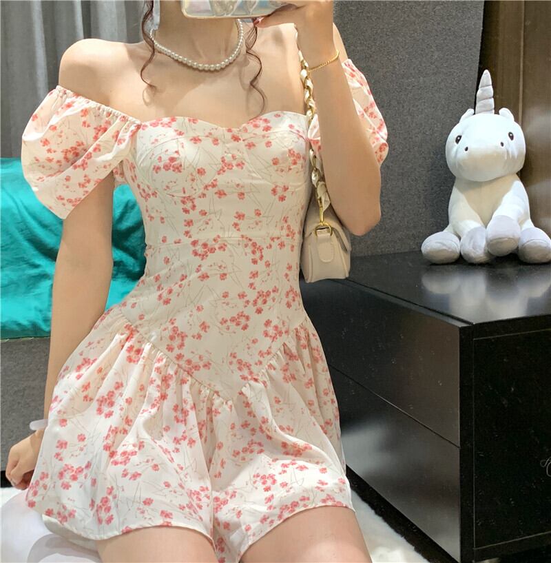 送料無料୨♥୧ サマーレディースミニドレス フローラルスリーブフリルショート ラッフル 大人ガーリー スウィート キュート カジュアル 夏物 花柄 AOS66694557085