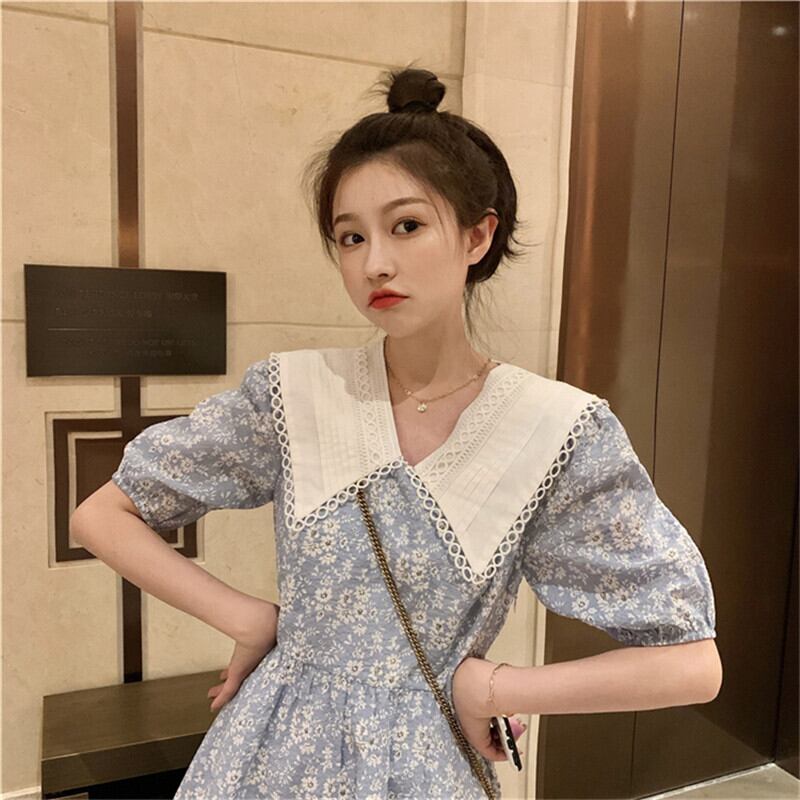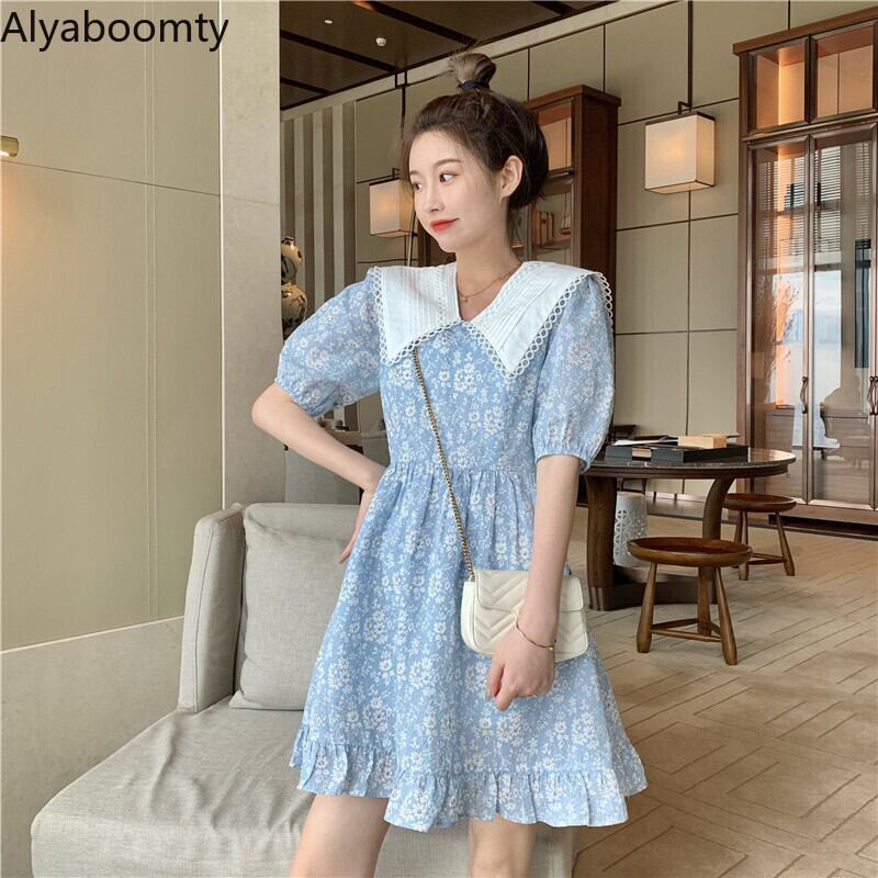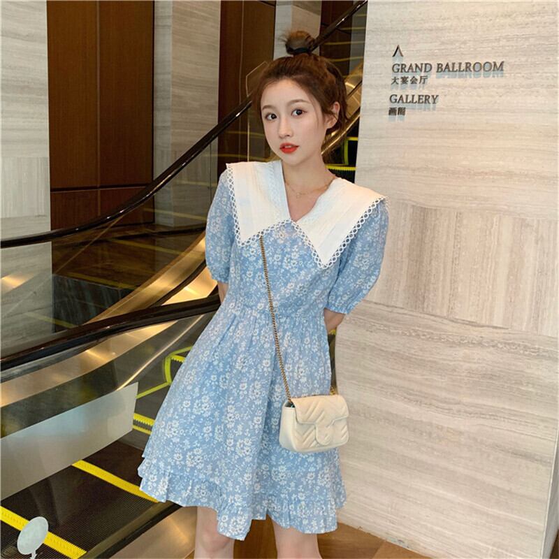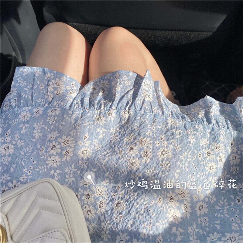 送料無料୨♥୧ サマーレディースミニドレス カラーブルーフローラルスリーブフリル ラッフル 大人ガーリー スウィート キュート カジュアル 夏物 花柄 AOS75498331098