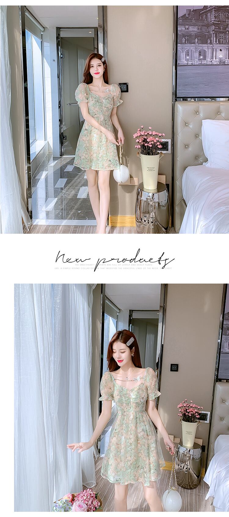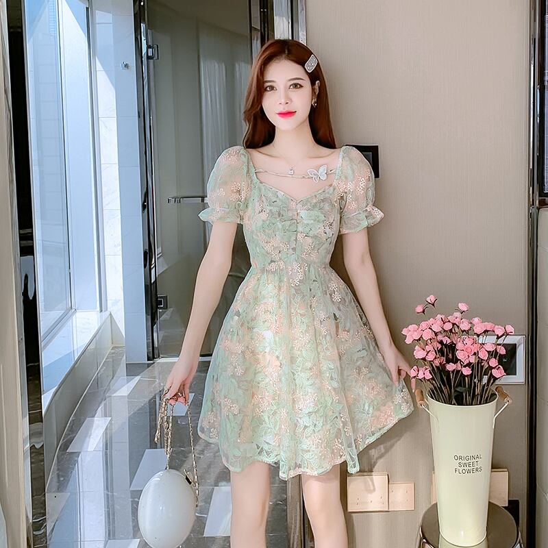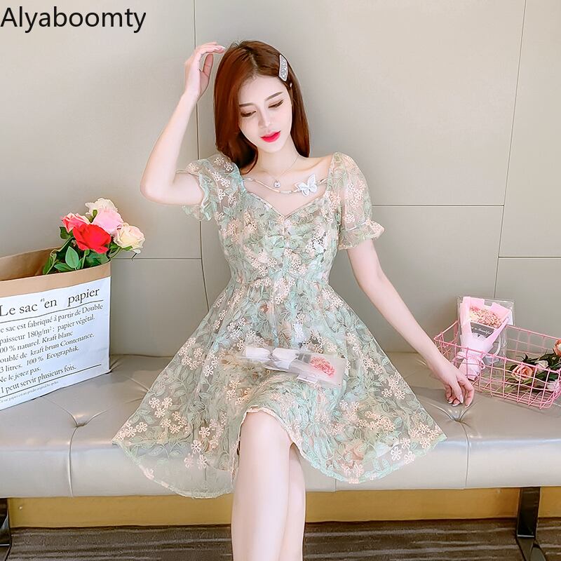 送料無料୨♥୧ サマーレディースミニドレス Vネックフローラル刺繍Butterflyデザイン 半袖スリーブメッシュレース ショート ハーフスリーブ 夏物 花柄 AOS10215333377