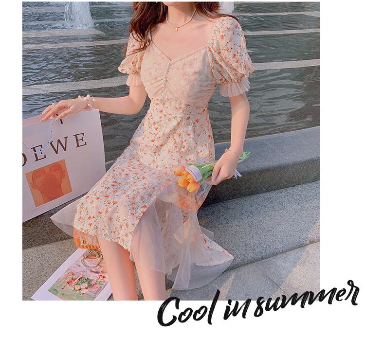 送料無料୨♥୧ スタイルサマーレディースミディドレス 刺繍フローラルメッシュ 大人ガーリー スウィート キュート カジュアル 夏物 花柄 AOS30595189716