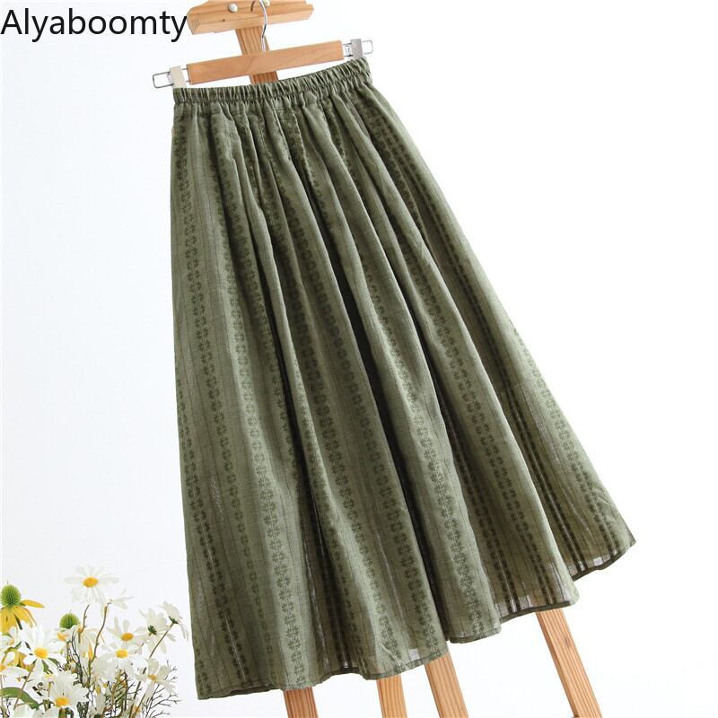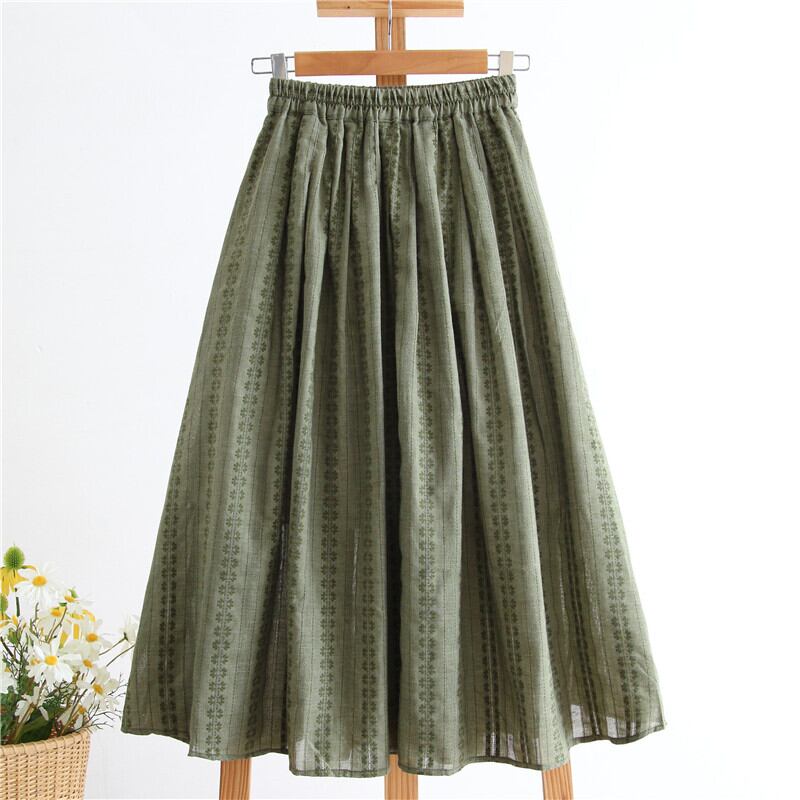 送料無料୨♥୧ スプリングサマーレディーススカート ウェストグリーンフローラルプリントヴィンテージ コットン 大人ガーリー スウィート キュート カジュアル 春物 夏物 花柄 ビンテージ AOS68845945474