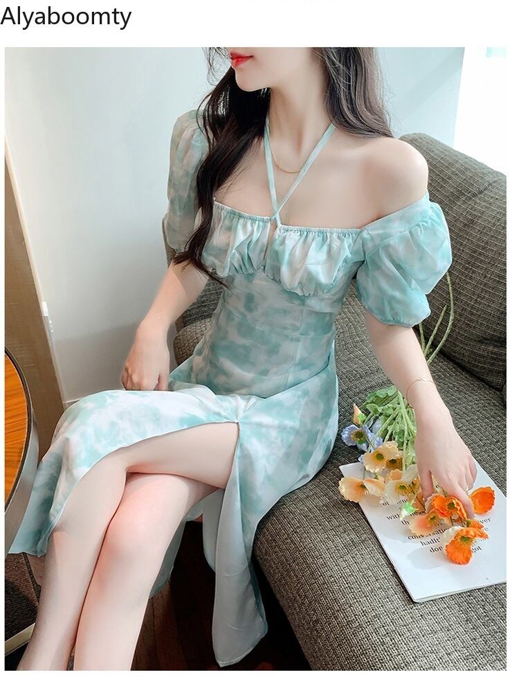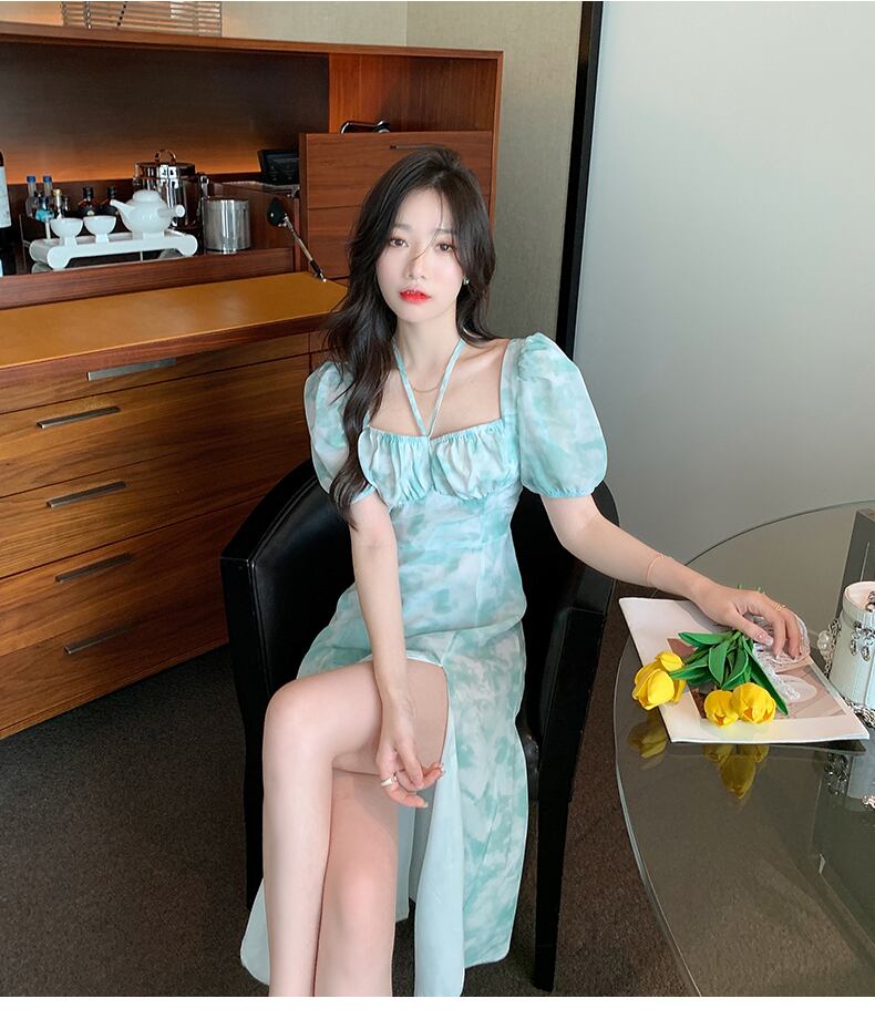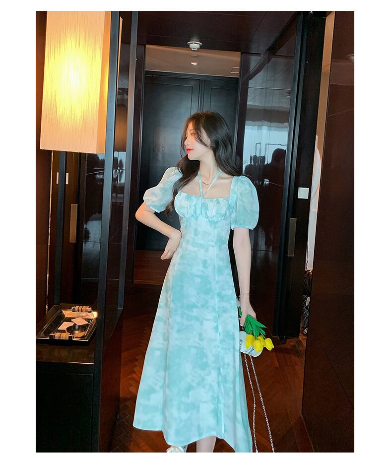 送料無料୨♥୧ サマーレディースミディAラインドレス ホルターカラーグリーンスリーブ 夏物 スクウェア AOS30070208665