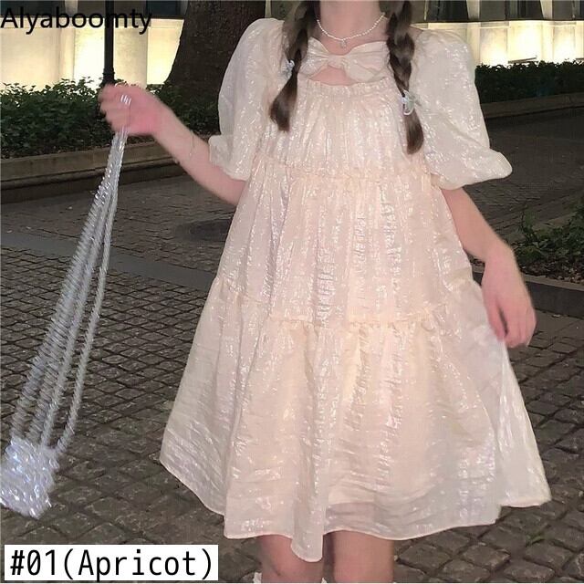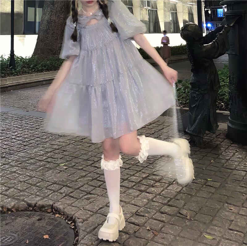 送料無料୨♥୧ サマーレディースミニドレス グレーリボンウェストバギースリーブフリル ラッフル 大人ガーリー スウィート キュート カジュアル 夏物 AOS57994738663