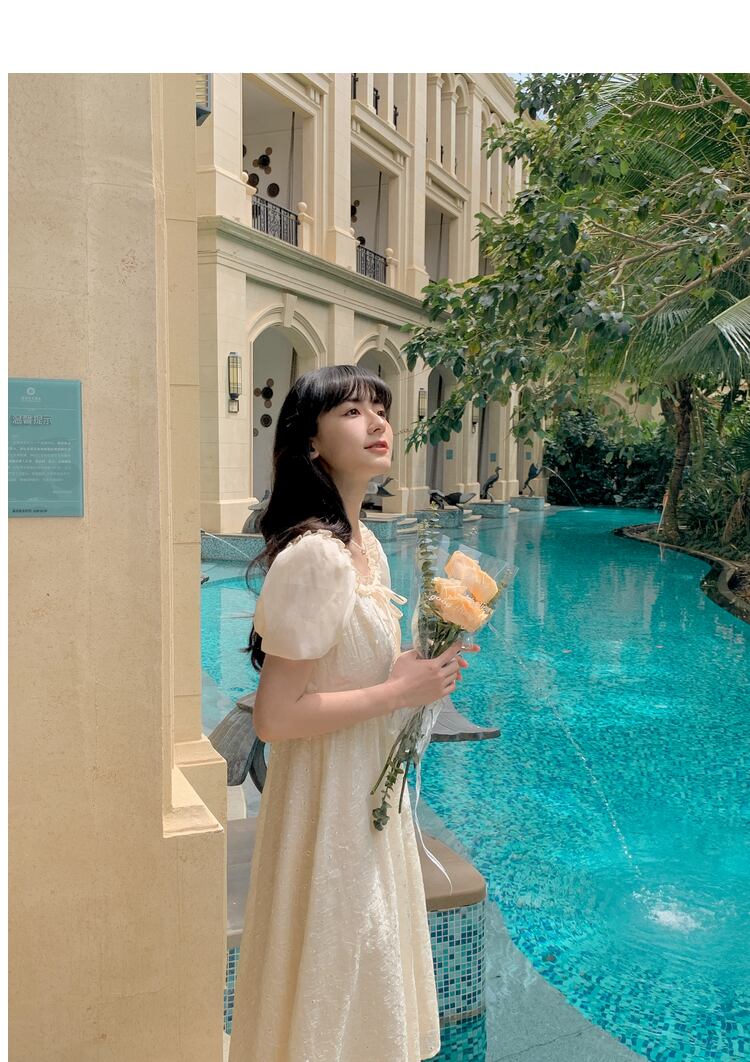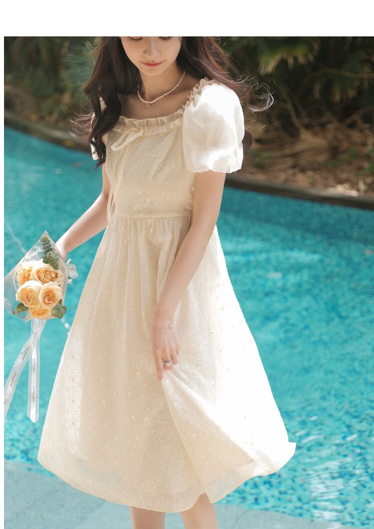 送料無料୨♥୧ サマーレディースドレス カラーフローラル刺繍スリーブ 大人ガーリー スウィート キュート カジュアル 夏物 花柄 スクウェア AOS19154801326