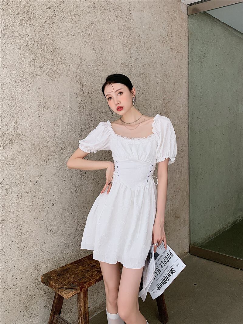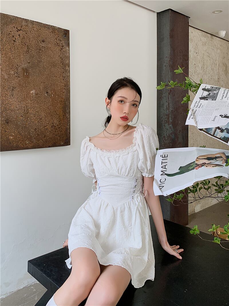送料無料୨♥୧ サマーレディーススタイルミニドレス ホワイトブラックフローラルジャカードスリーブバンドドレス ワンピース 夏物 花柄 AOS61270471281