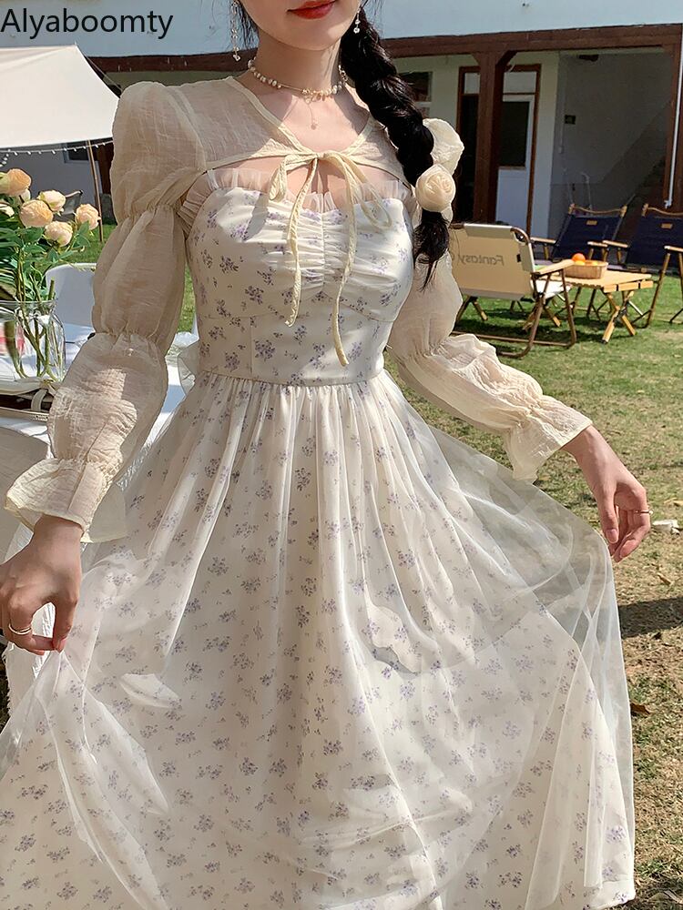 送料無料୨♥୧ サマーレディースミディドレス フローラルプリントメッシュリボンバックレスノースリーブ 大人ガーリー スウィート キュート カジュアル 夏物 ビーチ 花柄 AOS24953339400