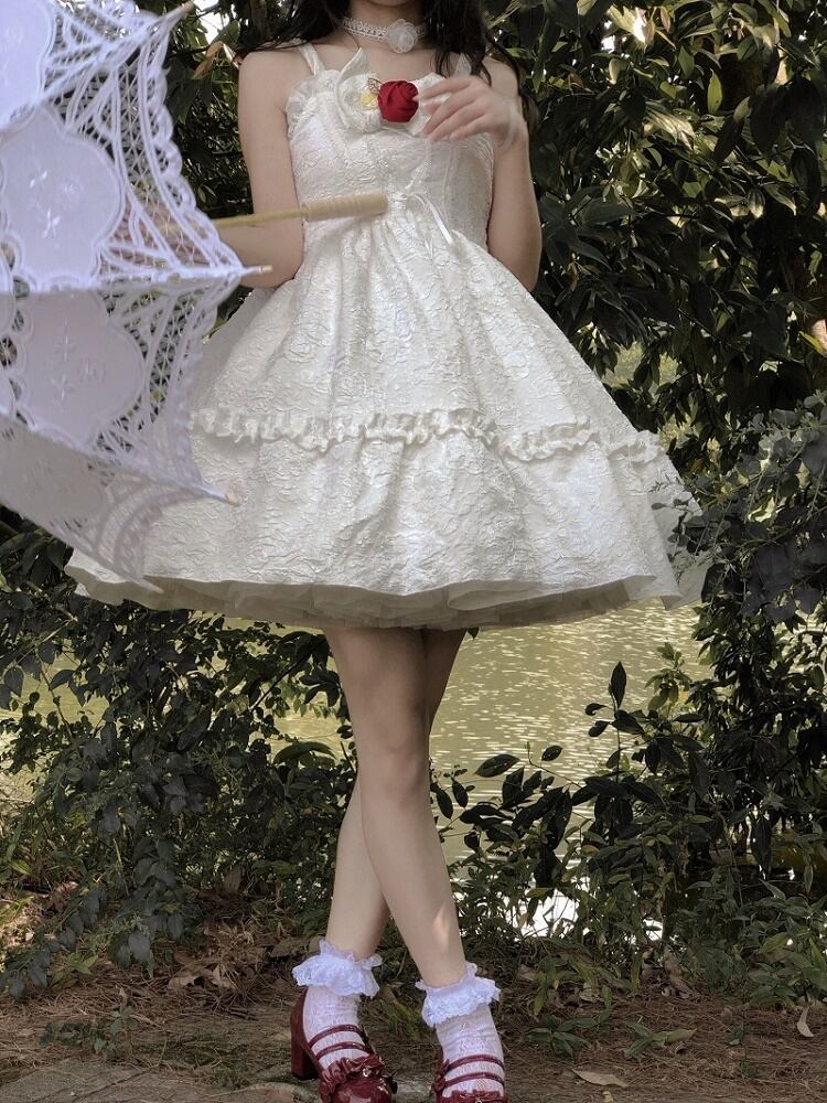送料無料୨♥୧ スタイルサマーレディースドレス リボンジャカードフリルガウン ラッフル 大人ガーリー スウィート キュート カジュアル 夏物 AOS49307015566