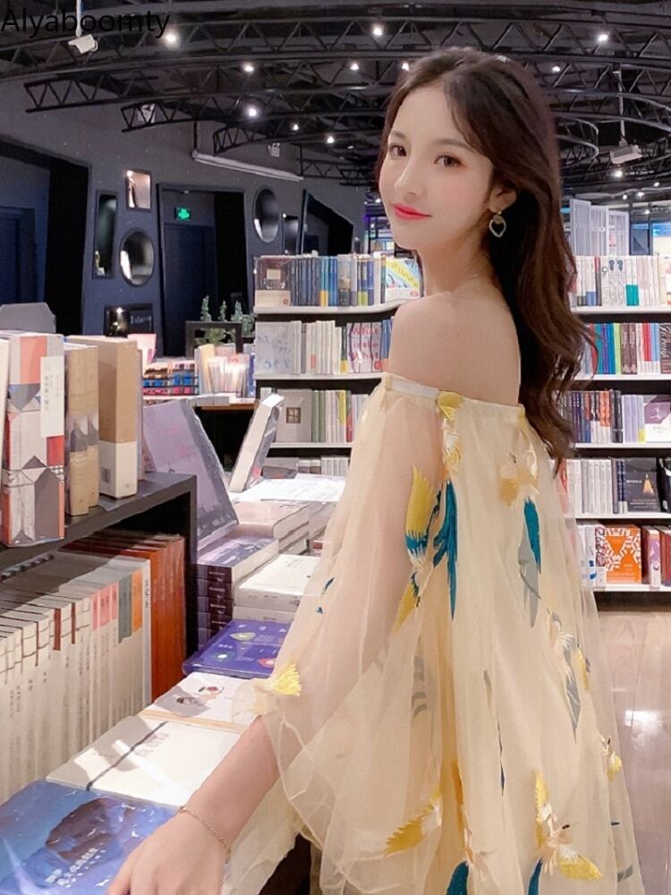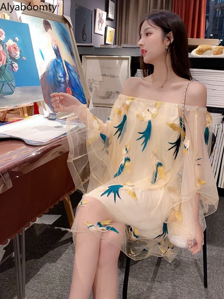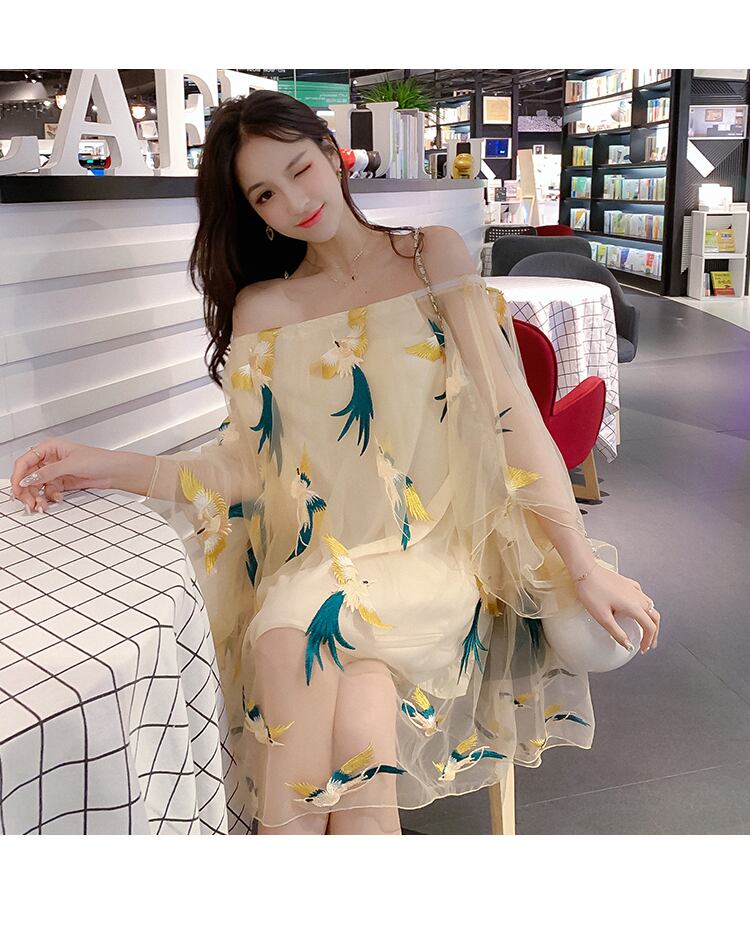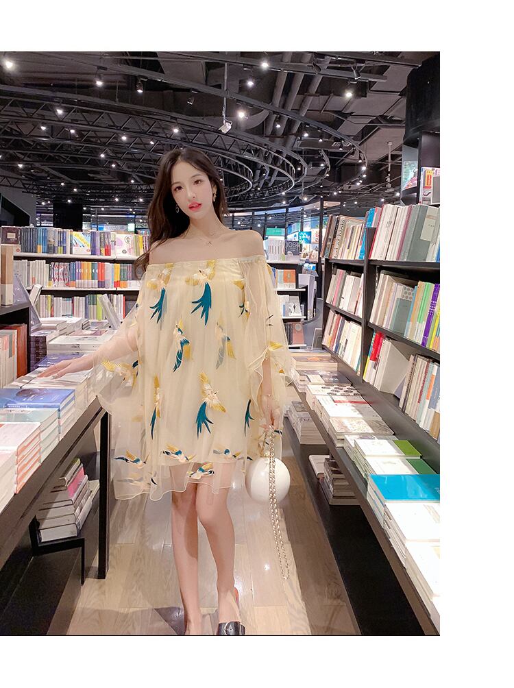 送料無料୨♥୧ サマーレディースメッシュミニドレス 刺繍スリーブ 夏物 AOS108801603