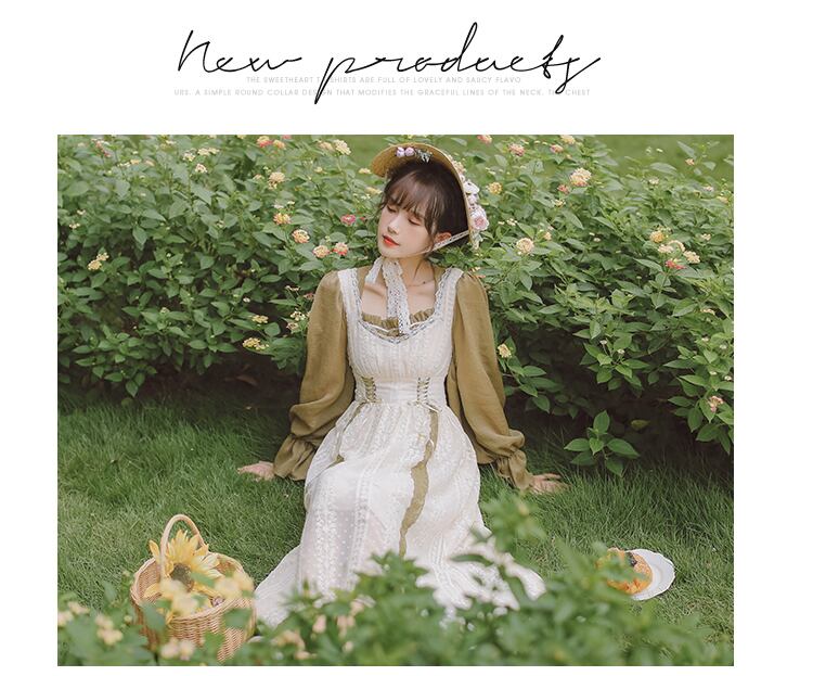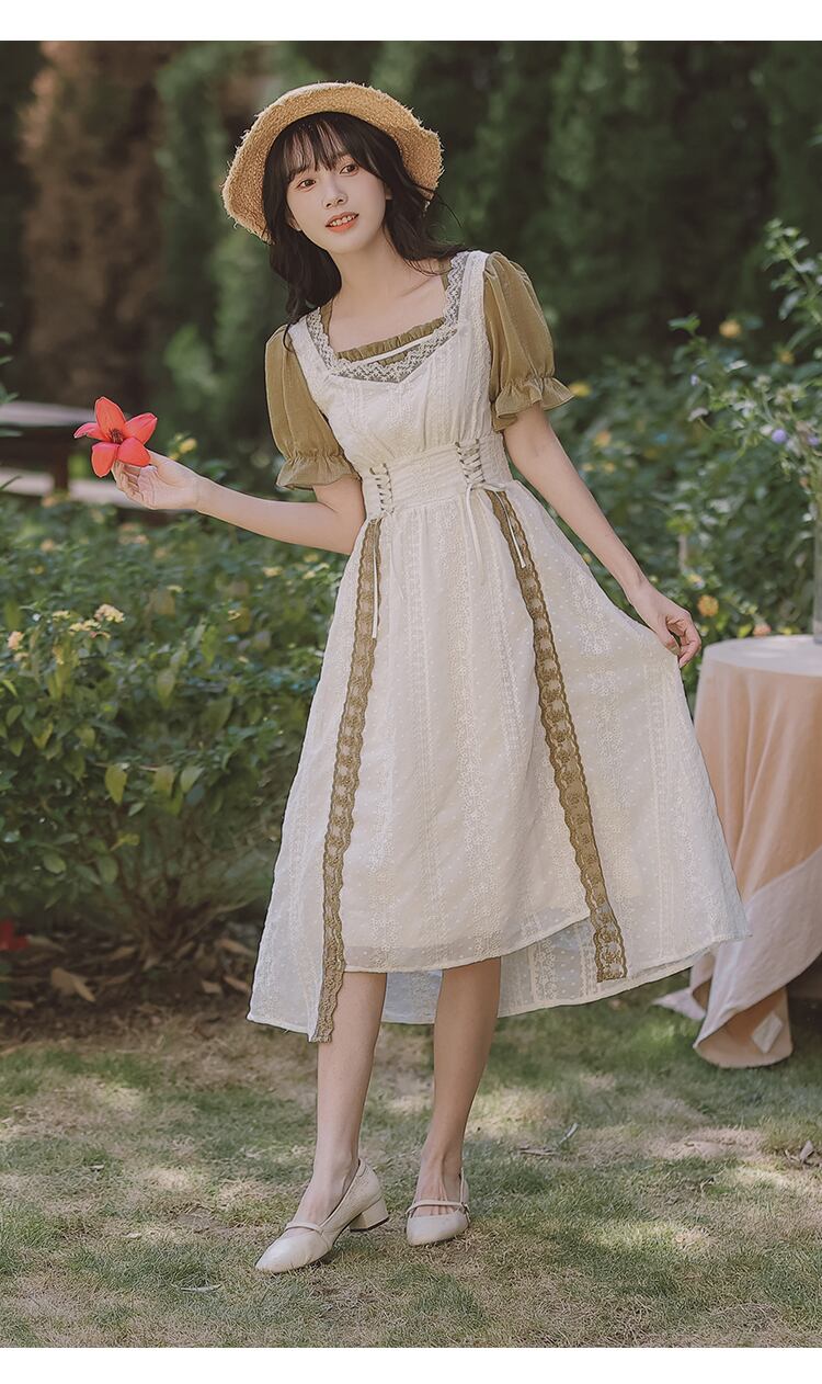 送料無料୨♥୧ サマーレディースミディドレス カラーパッチワークレースロング 大人ガーリー スウィート キュート カジュアル 夏物 レースアップ AOS8218390626