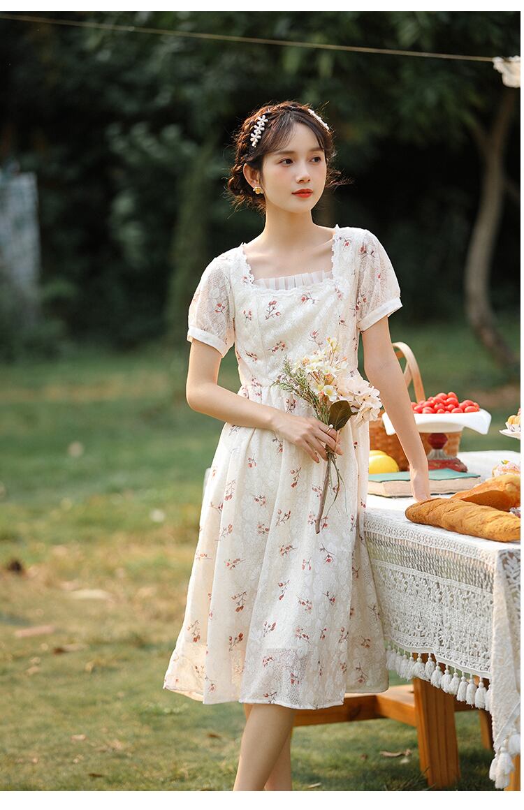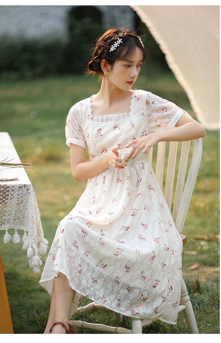 送料無料୨♥୧ サマーレディースミディドレス カラーフローラルプリント半袖スリーブAライン ショート ハーフスリーブ 大人ガーリー スウィート キュート カジュアル 夏物 花柄 スクウェア AOS21471462345