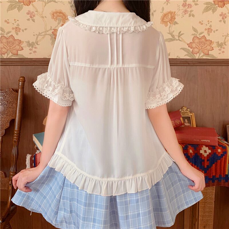 送料無料୨♥୧ サマーレディースホワイトブラウス カラーレースフリルシフォンスリーブトップス フレアスリーブ ラッフル 大人ガーリー スウィート キュート カジュアル 夏物 AOS84688899953