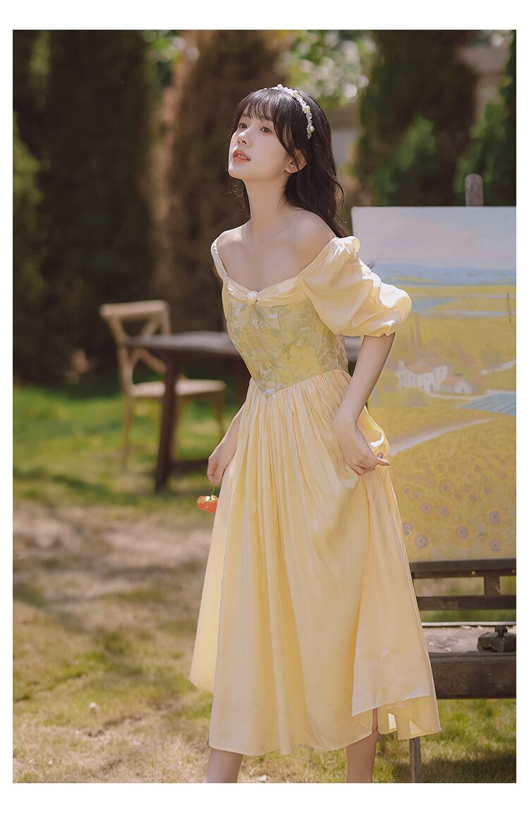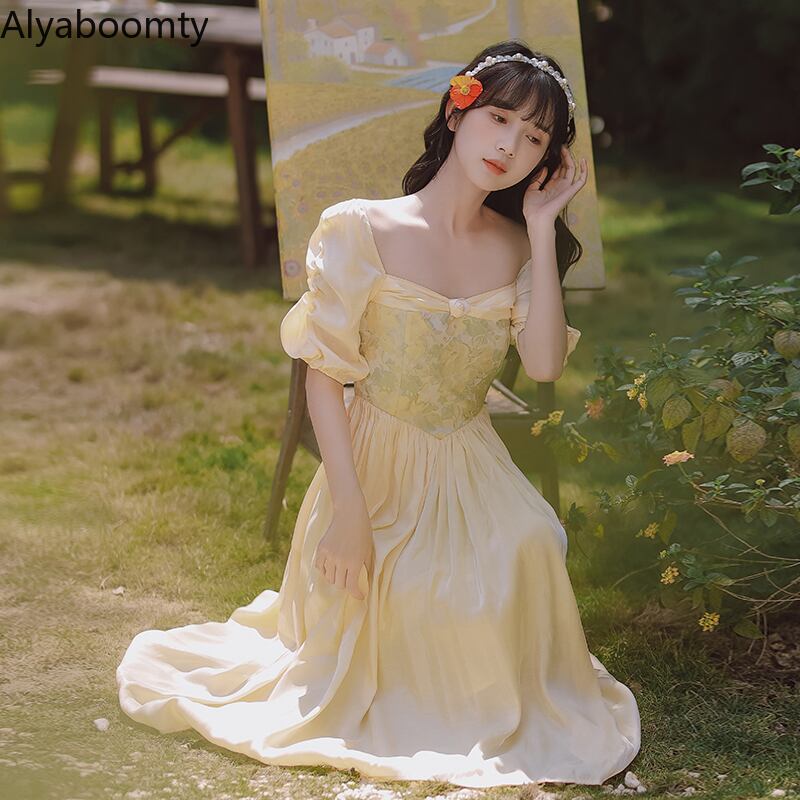 送料無料୨♥୧ サマーレディースドレス カラーパッチワークヴィンテージスリーブミディ 大人ガーリー スウィート キュート カジュアル 夏物 スクウェア ビンテージ AOS24042737007