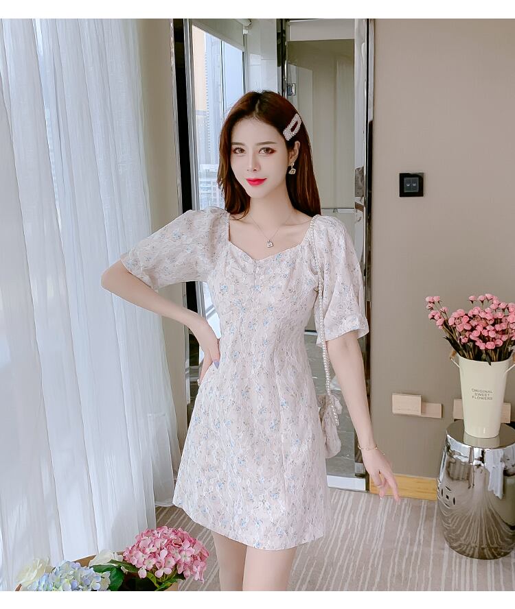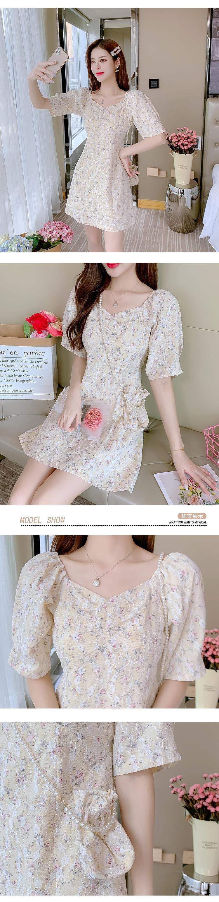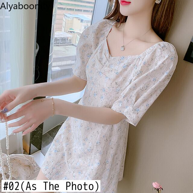 送料無料୨♥୧ サマーレディースミニドレス カラーブルーフローラルレース半袖スリーブ ショート ハーフスリーブ 夏物 花柄 スクウェア AOS88361347953