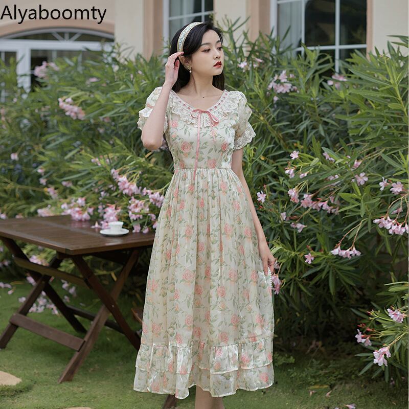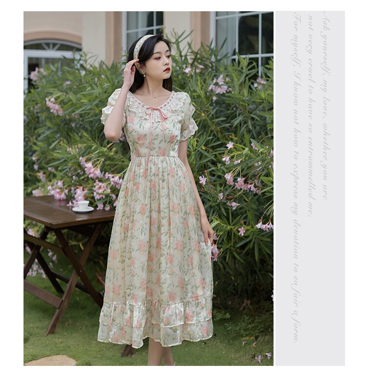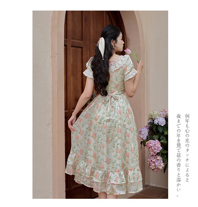 送料無料୨♥୧ サマーレディースドレス レースフローラルプリントフリルロング レッド ラッフル 大人ガーリー スウィート キュート カジュアル 夏物 花柄 AOS59758113977