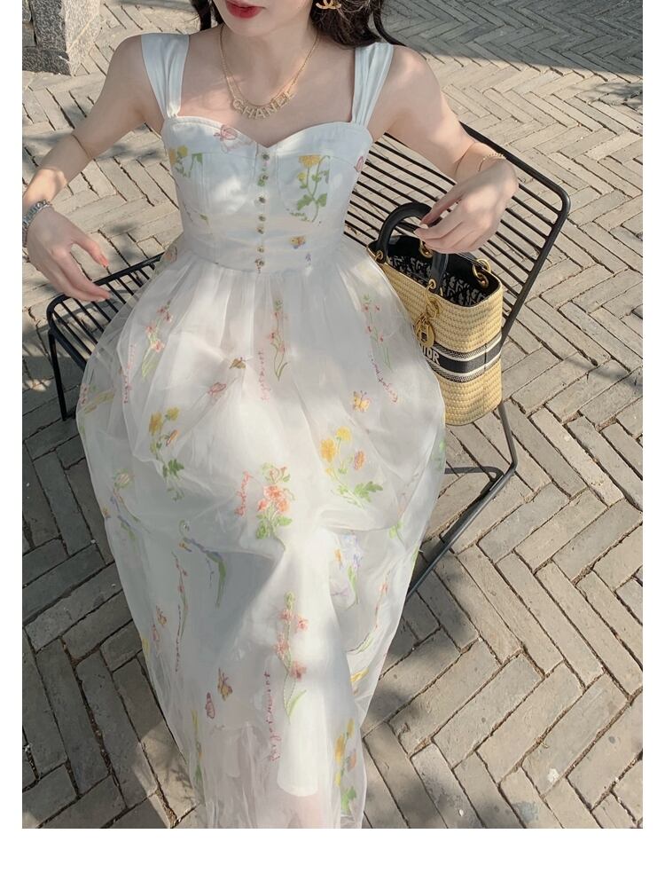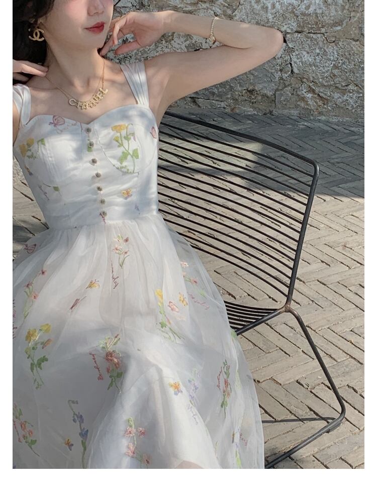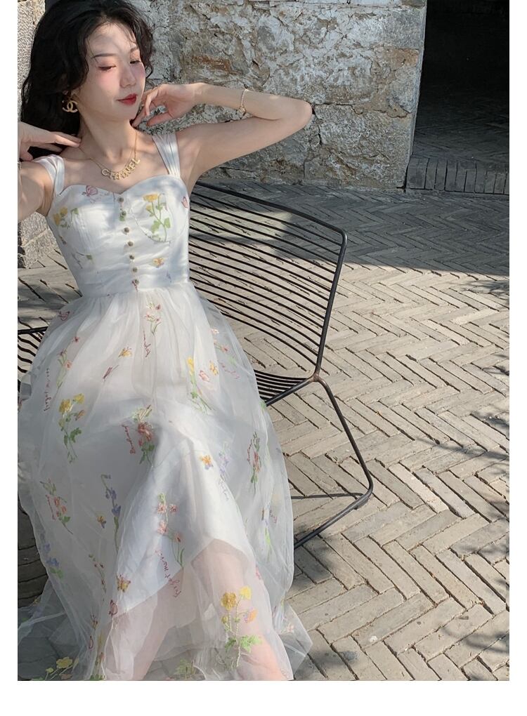 送料無料୨♥୧ サマーレディースミディドレス フローラル刺繍メッシュノースリーブ 夏物 花柄 AOS25508223287