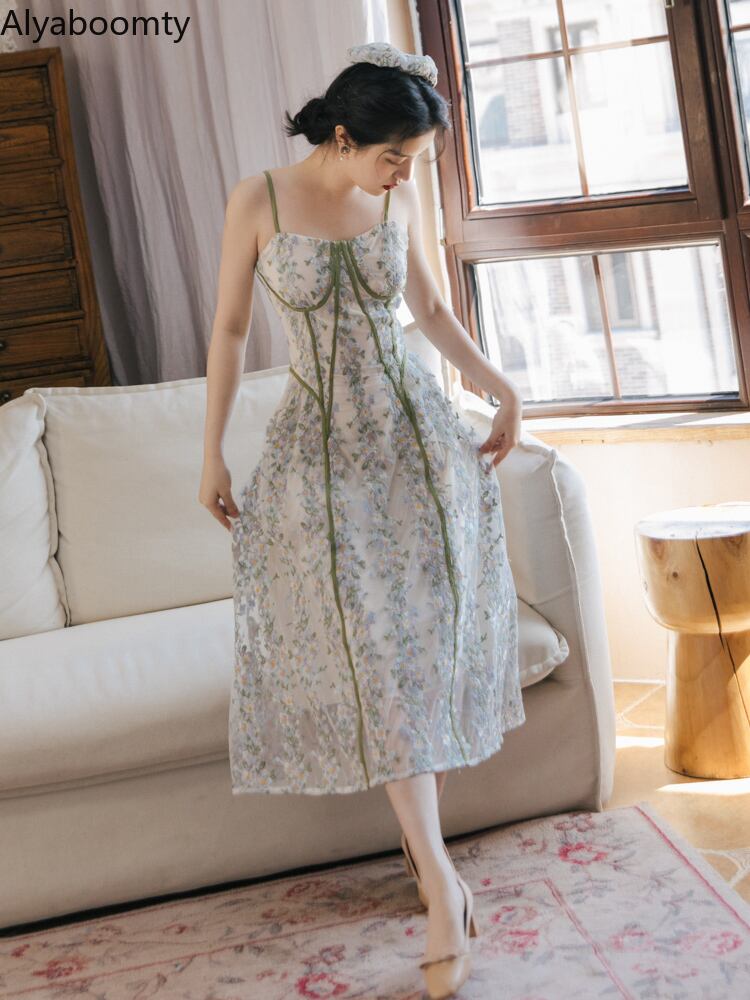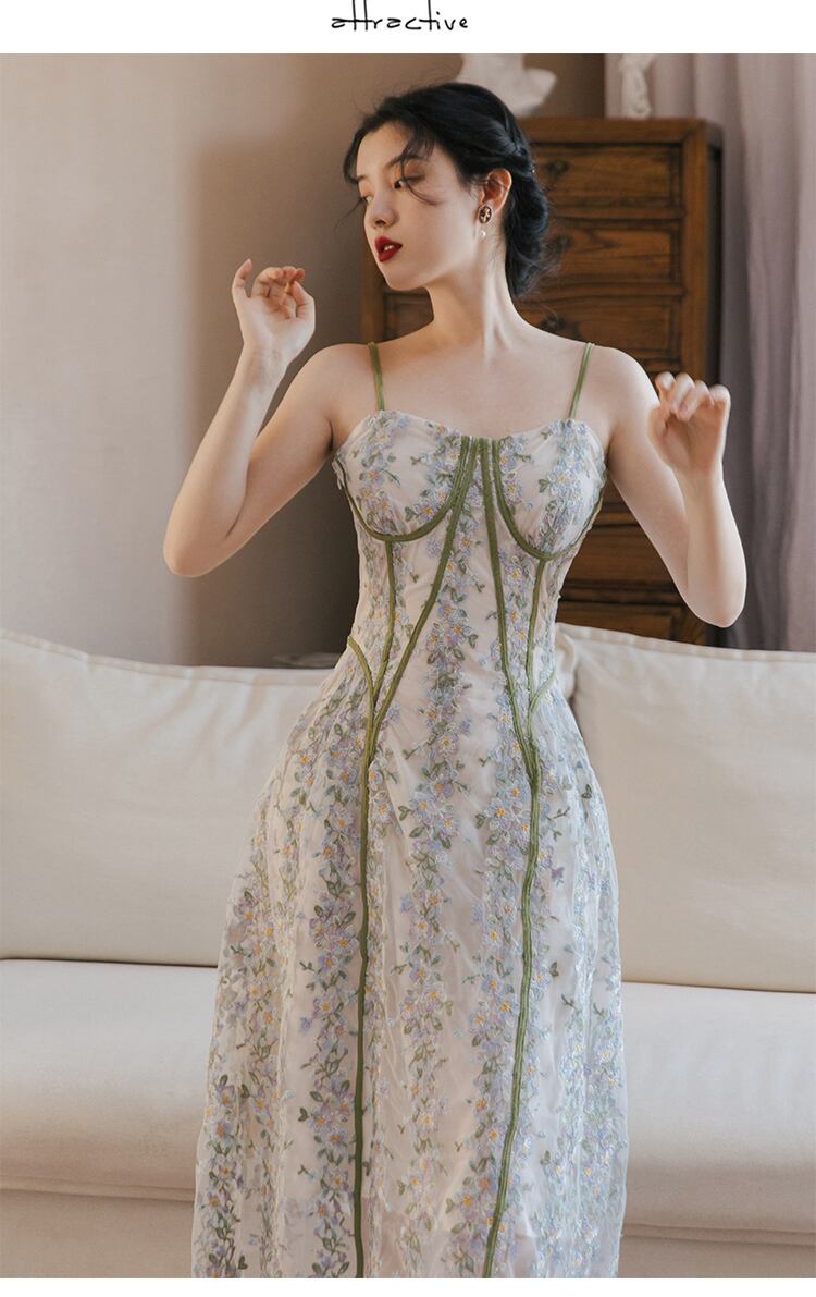 送料無料୨♥୧ サマーレディースミディメッシュドレス カラーフローラル刺繍 夏物 花柄 スクウェア AOS11903471401