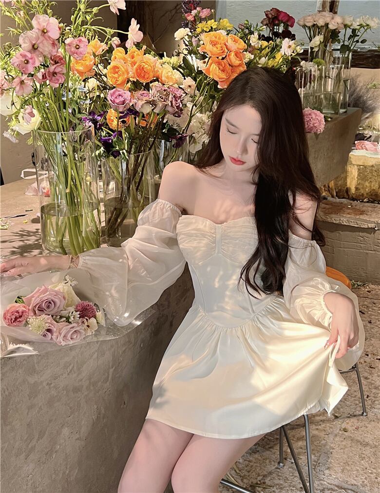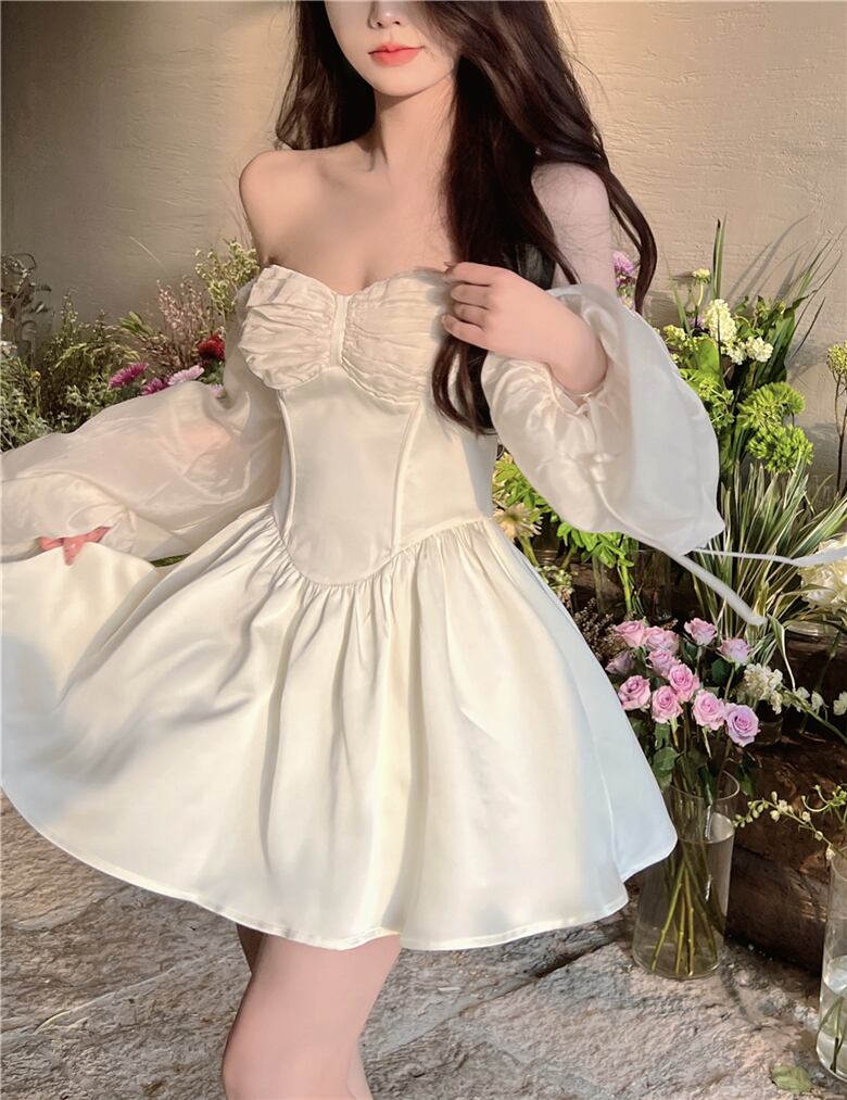 送料無料୨♥୧ サマーレディースミニドレス スリーブプリーツベージュショート ランタンスリーブ 大人ガーリー スウィート キュート カジュアル 夏物 AOS30369685820