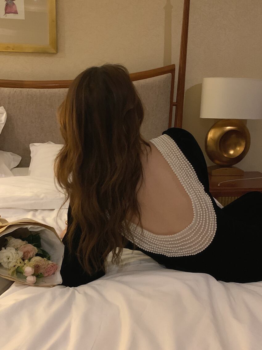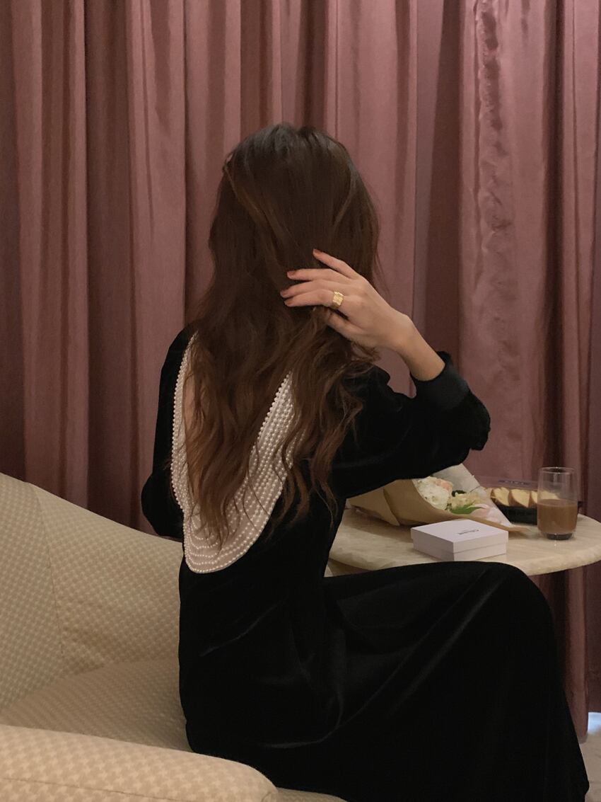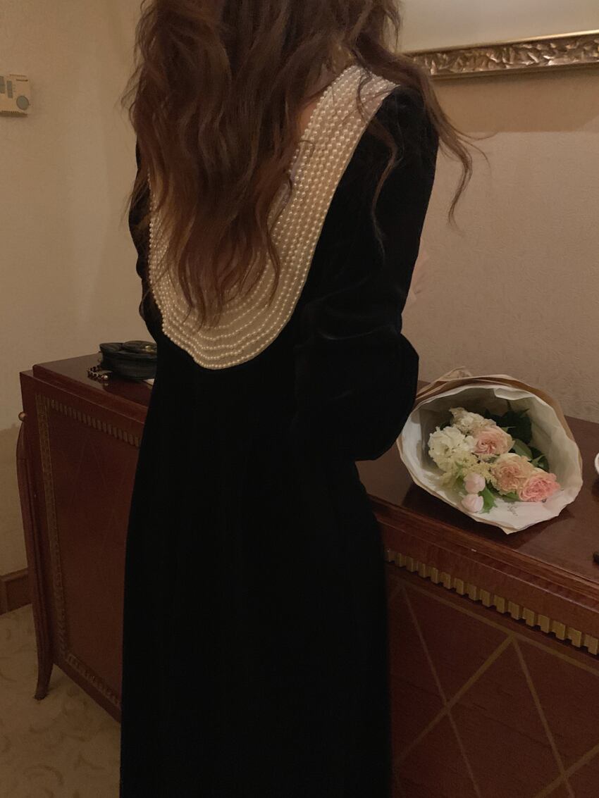 送料無料୨♥୧ スプリングオータムレディースロングドレス カラーベルベットバックレスヴィンテージ 春物 秋物 スクウェア ビンテージ AOS15694826278