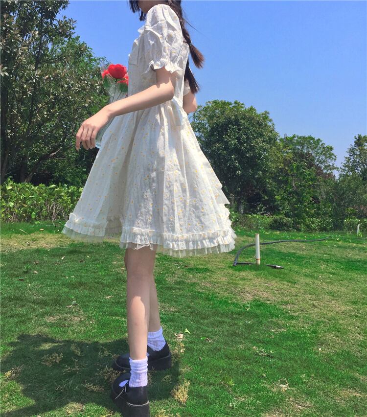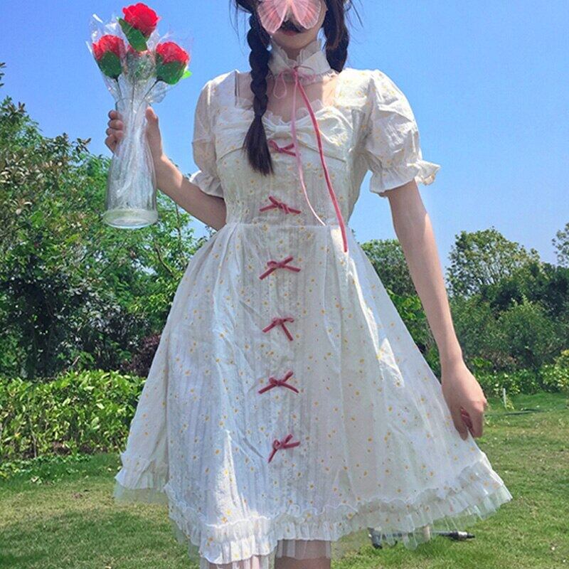 送料無料୨♥୧ スタイルサマーレディースミニドレス カラーフローラルリボン半袖スリーブフリル ショート ハーフスリーブ ラッフル 大人ガーリー スウィート キュート カジュアル 夏物 花柄 スクウェア AOS98537973025
