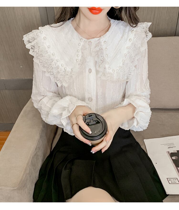 送料無料୨♥୧ オータムスプリングレディースシャツ カラーレースフリル長袖スリーブ ロング ラッフル 大人ガーリー スウィート キュート カジュアル 春物 秋物 AOS94822154098