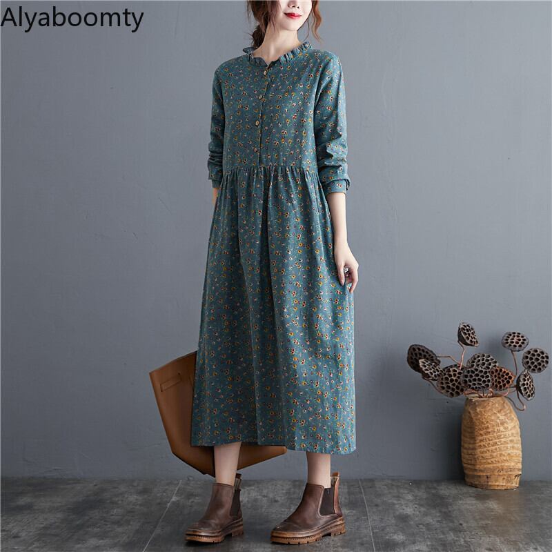 送料無料୨♥୧ オータムレディースロングドレス カラーフローラルプリント柄バギーヴィンテージ コットン 大人ガーリー スウィート キュート カジュアル 秋物 花柄 ビンテージ AOS66963857468