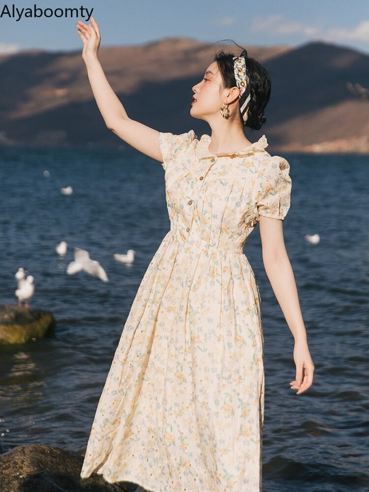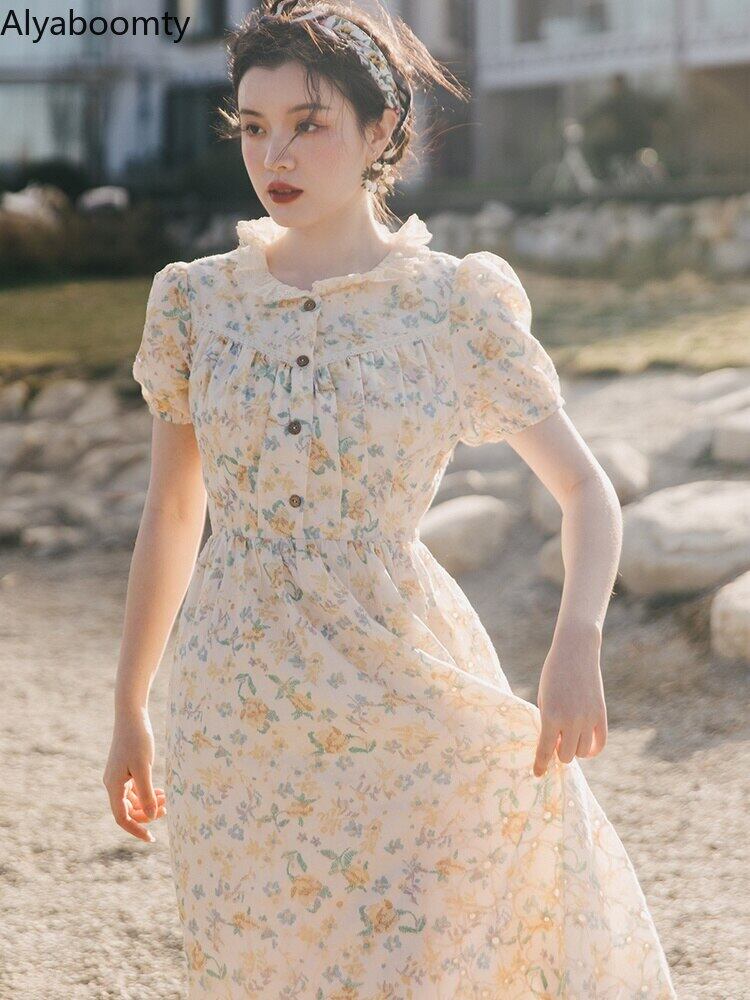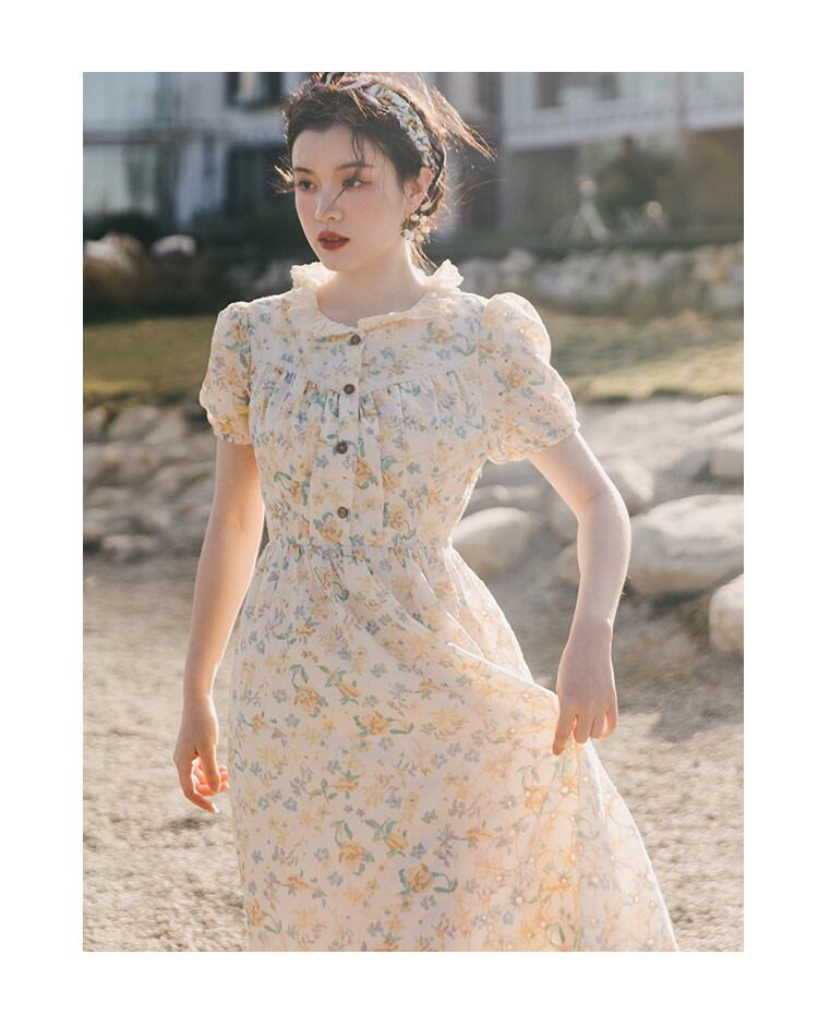 送料無料୨♥୧ サマーレディースロングドレス カラーフローラルプリント柄ヴィンテージ コットン 大人ガーリー スウィート キュート カジュアル 夏物 花柄 ビンテージ AOS41797320203
