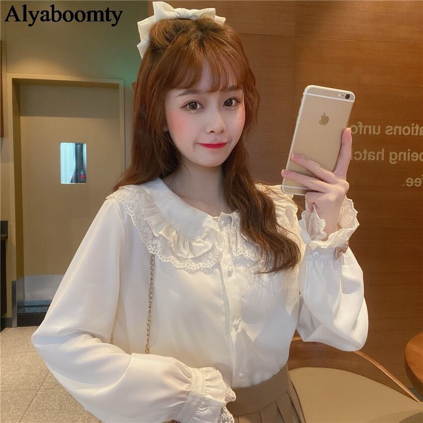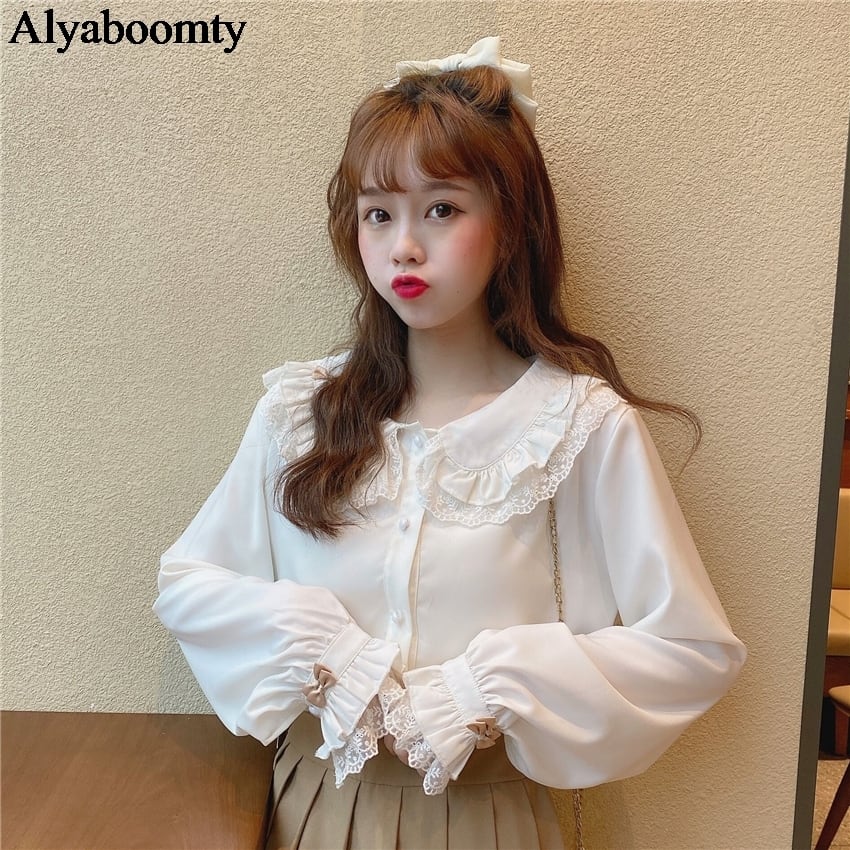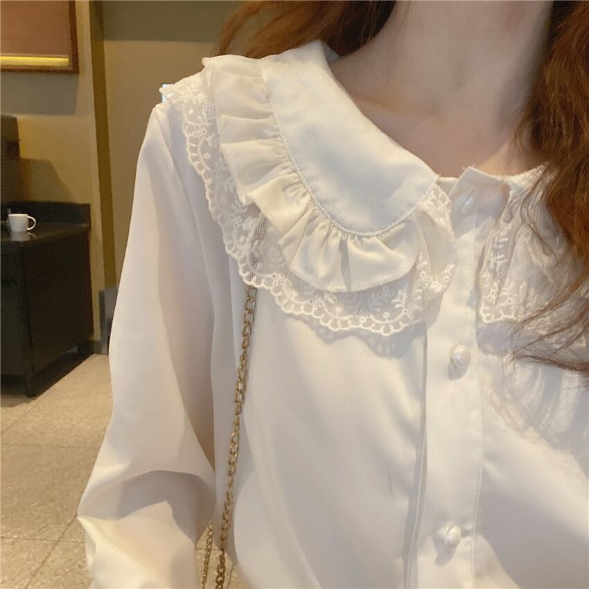 送料無料୨♥୧ スタイルスプリングオータムレディースブラウス カラーレースホワイトブラックリボンシャツ 大人ガーリー スウィート キュート カジュアル 春物 秋物 AOS14087981297