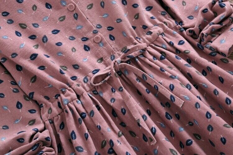送料無料୨♥୧ オータムウィンターレディースドレス スタンドカラーカラープリント柄スリーブネイビーブルーミニ ピンク コットン 大人ガーリー スウィート キュート カジュアル 秋物 冬物 AOS26279955215