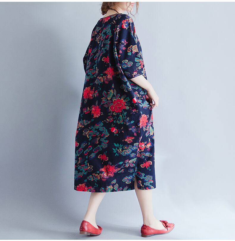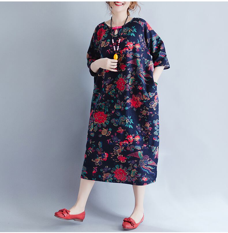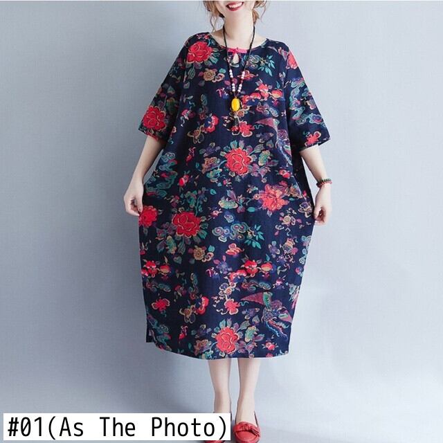 送料無料୨♥୧ エスニックスタイルスプリングサマーレディースドレス フローラルルーズ半袖スリーブヴィンテージロングドレス ワンピース コットン ハーフスリーブ 春物 夏物 花柄 ビンテージ AOS16766019119