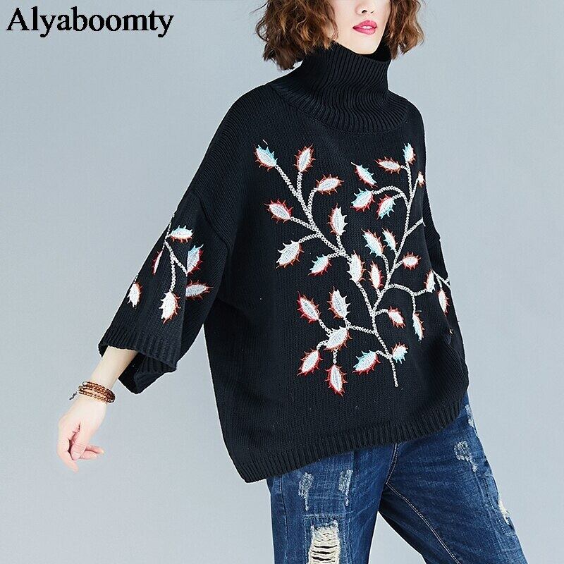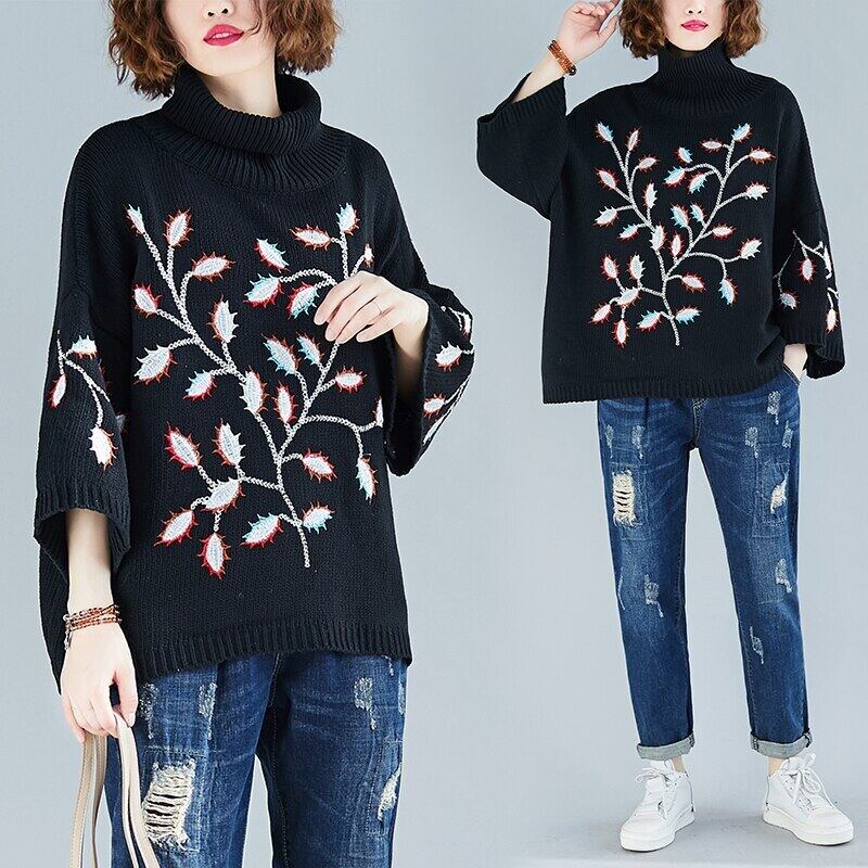 送料無料୨♥୧ オータムウィンターレディースブラックセーター フローラル刺繍ニットプルオーバー ヴィンテージ 秋物 冬物 花柄 ビンテージ AOS75128563220