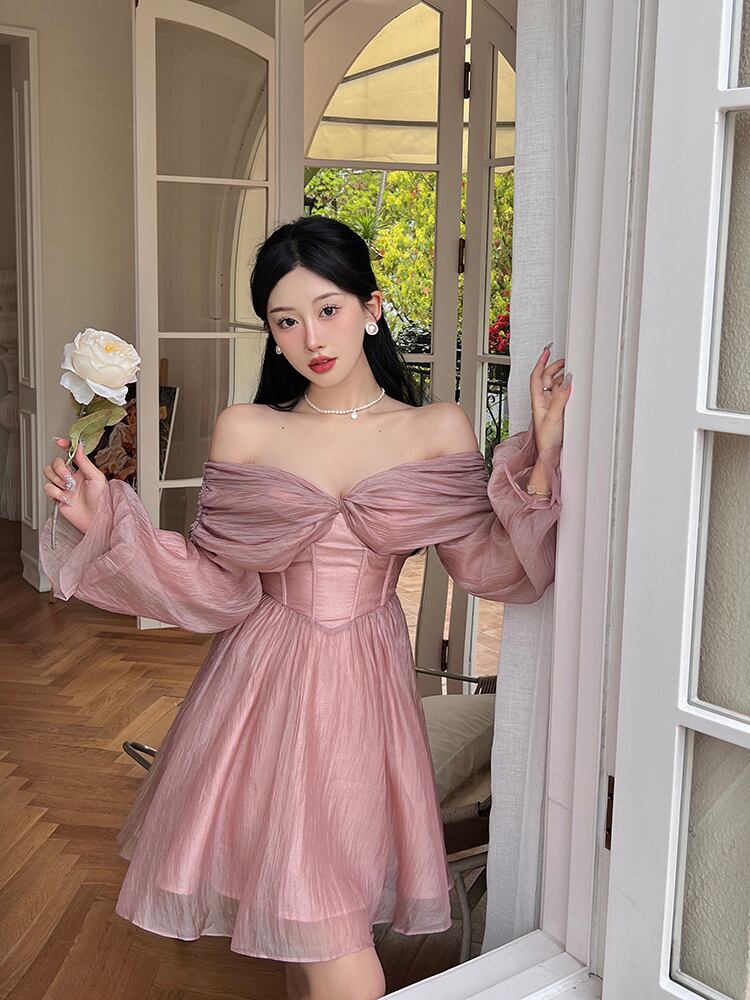 送料無料୨♥୧ サマーレディースミニドレス ウェストオフショルダーショート ピンク 夏物 AOS92156469252