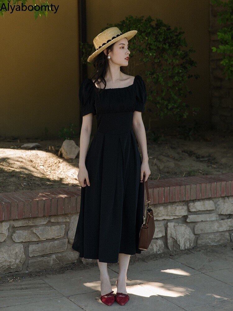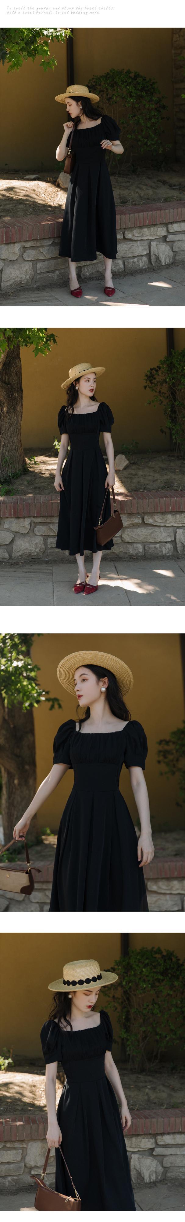 送料無料୨♥୧ スタイルサマーレディースソリッド ドレス カラーホワイトブラックレッドプリーツウェストスリーブロング 夏物 ソリッドカラー スクウェア ヨーロピアン AOS66280062589