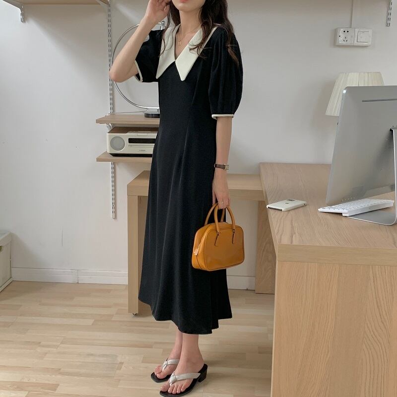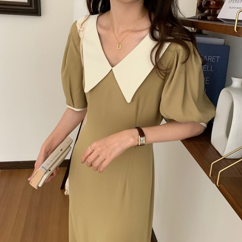送料無料୨♥୧ サマーレディースAラインドレス カラーブラックカーキロングスリーブ 夏物 AOS35808174149