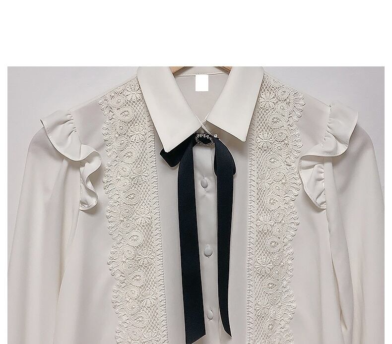 送料無料୨♥୧ スタイルスプリングレディースホワイトシャツ カラーレースブラウス 長袖スリーブトップス ロング 春物 AOS72097499463