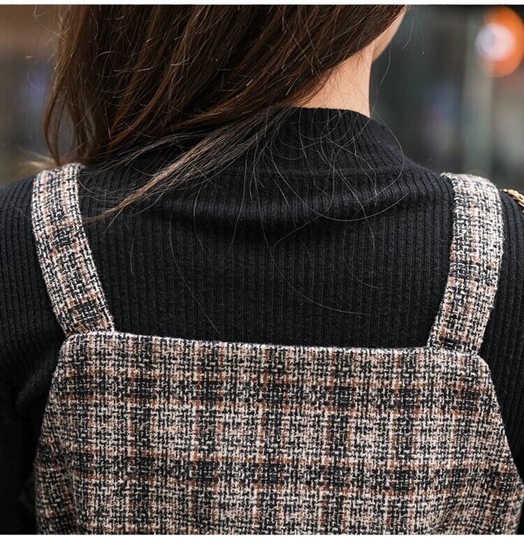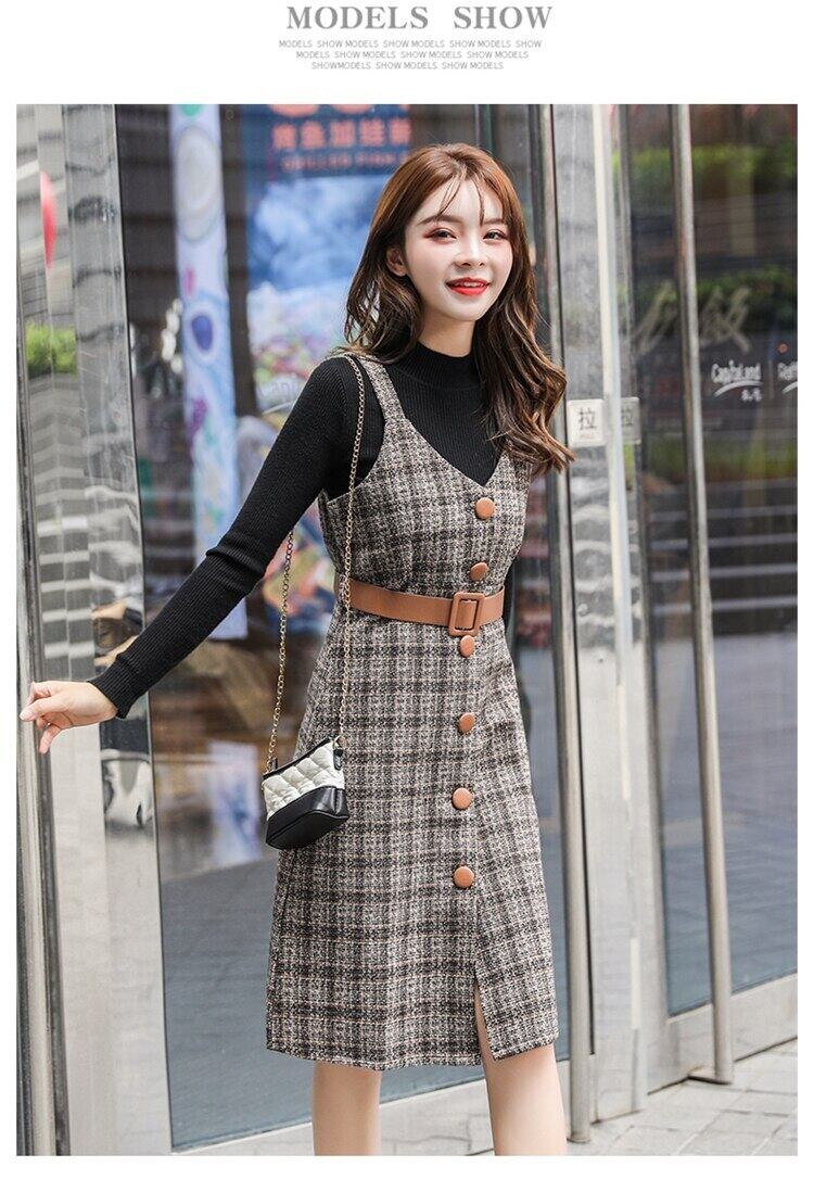 送料無料୨♥୧ オータムウィンターレディースノースリーブドレス Vネック格子柄 大人ガーリー スウィート キュート カジュアル 秋物 冬物 AOS93409836066