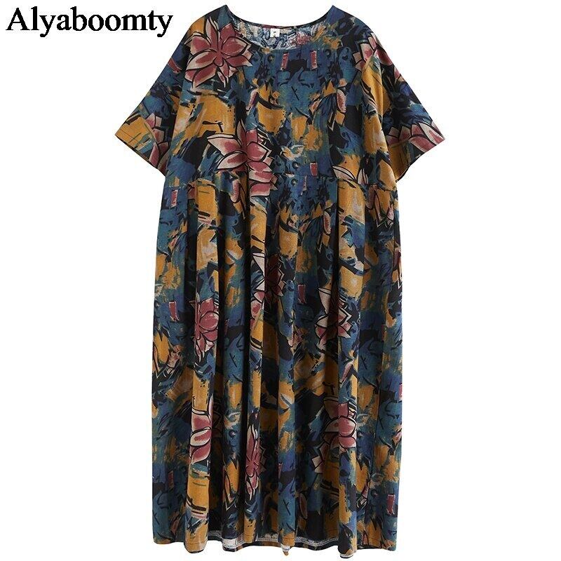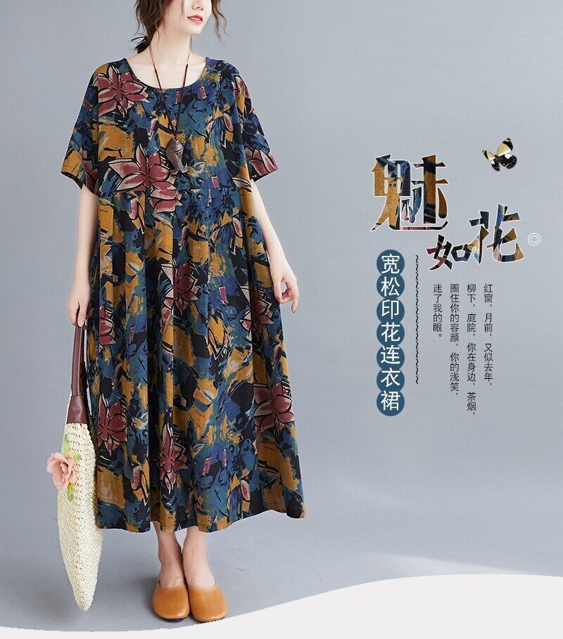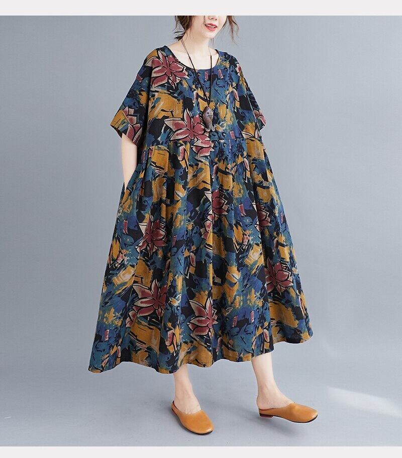 送料無料୨♥୧ ヴィンテージサマーレディースロングドレス カラーフローラルプリントバギースタンダードドレス ワンピース コットン レトロ 夏物 花柄 ビンテージ AOS24147587112