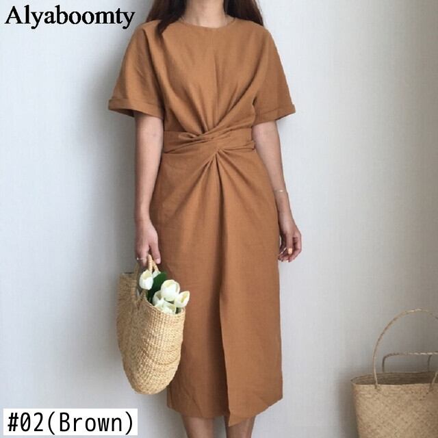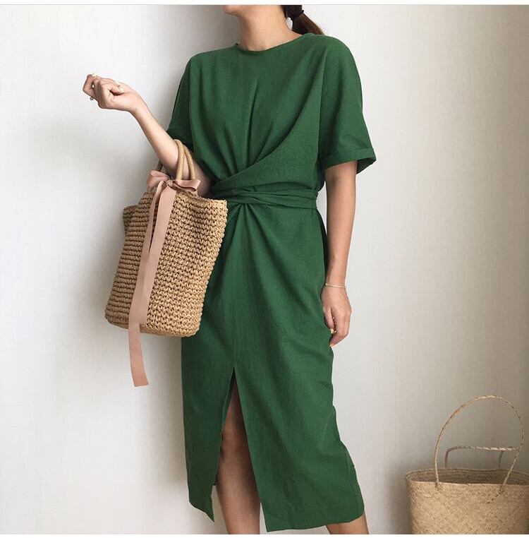送料無料୨♥୧ サマーレディースロングドレス ソリッド バンドミディスタンダード コットン レトロ 夏物 ソリッドカラー AOS89220317041