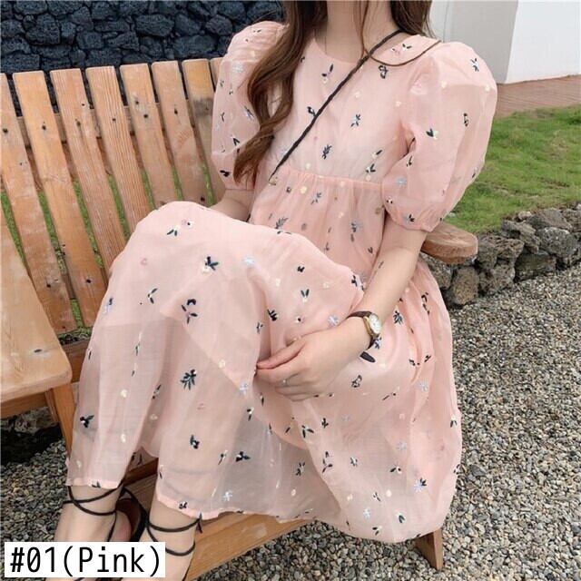 送料無料୨♥୧ スタイルサマーレディースドレス フローラル刺繍バックレスリボンスリーブ ピンク 大人ガーリー スウィート キュート カジュアル 夏物 花柄 AOS29739626226