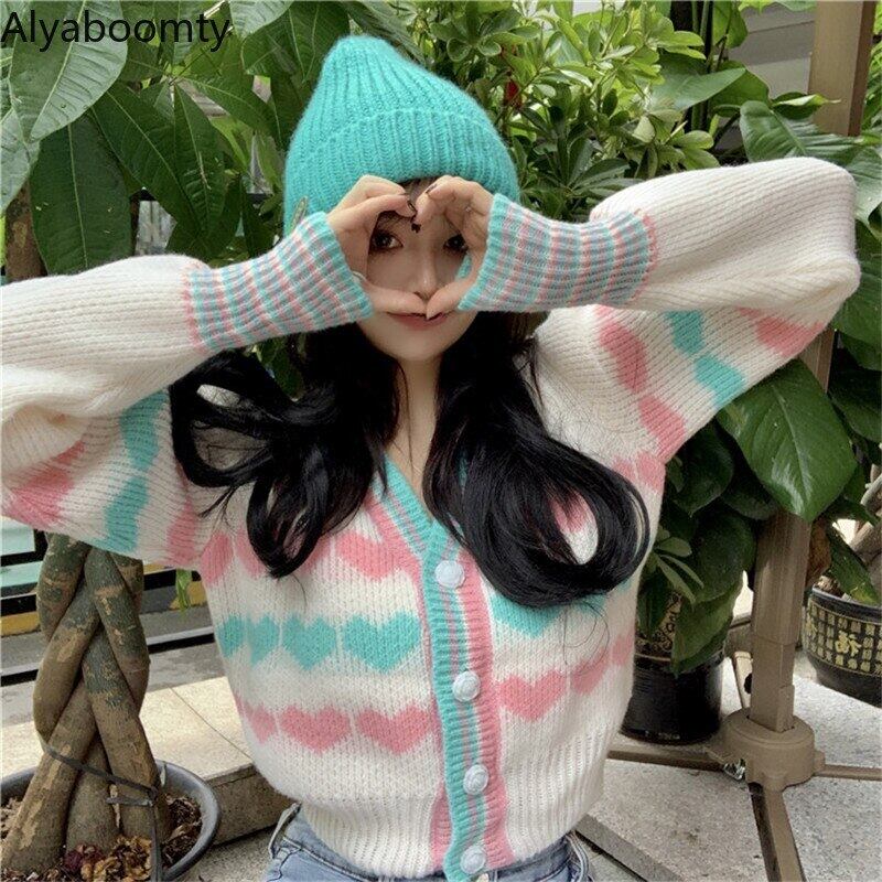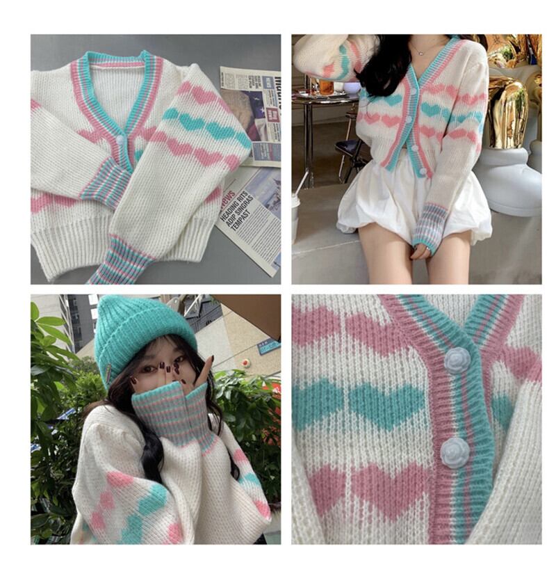 送料無料୨♥୧ スプリングオータムレディースショートセーター Vネックハートニットカーディガンアウター 大人ガーリー スウィート キュート カジュアル かわいい 春物 秋物 AOS85179775081