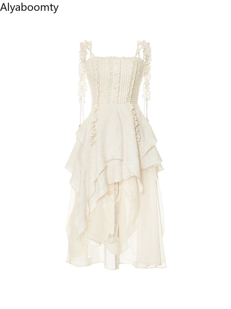 送料無料୨♥୧ サマーレディースロングドレス ジャカードフローラルフリル レッド ラッフル 夏物 花柄 AOS83302676937