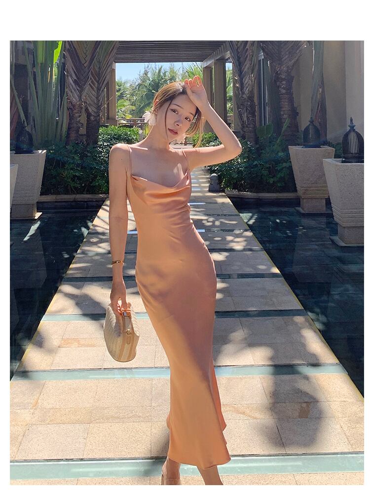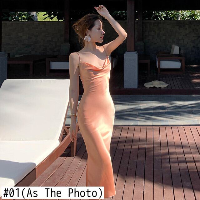 送料無料୨♥୧ サマーレディースロングソリッド ドレス スタイルバックレスノースリーブ 夏物 ビーチ ソリッドカラー AOS68609821787