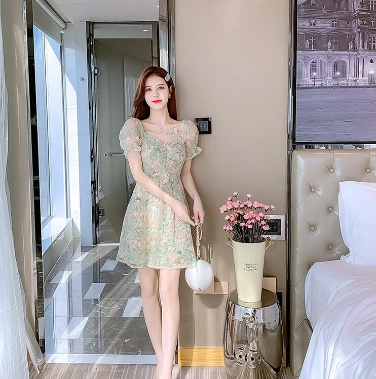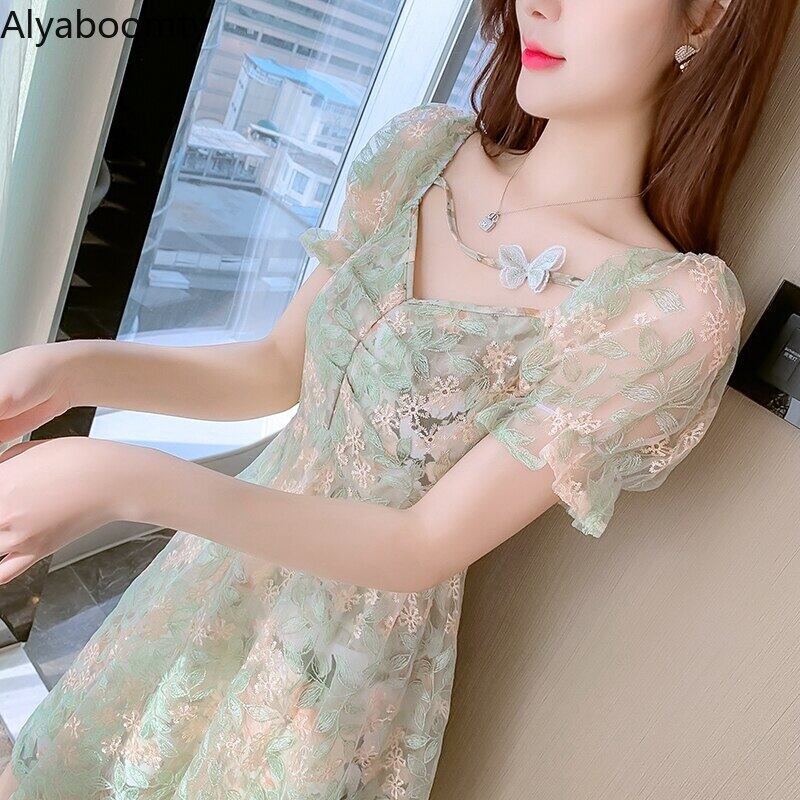 送料無料୨♥୧ サマーレディースミニドレス Vネックフローラル刺繍Butterflyデザイン 半袖スリーブメッシュレース ショート ハーフスリーブ 夏物 花柄 AOS3712275361