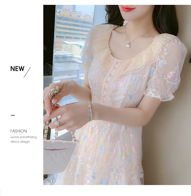 送料無料୨♥୧ サマーレディースロングドレス カラーフローラル刺繍フリルスリーブ レッド ラッフル 夏物 花柄 AOS20544127228