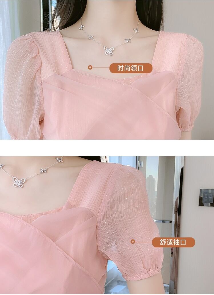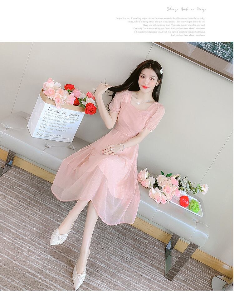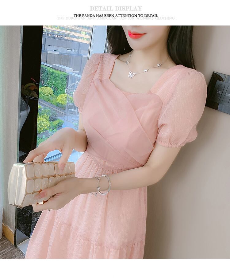 送料無料୨♥୧ サマーレディースAラインドレス カラークロスバンドリボンスリーブ ピンク 大人ガーリー スウィート キュート カジュアル 夏物 スクウェア AOS67378369198