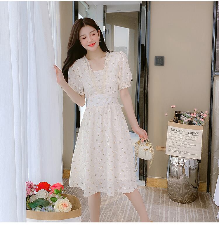 送料無料୨♥୧ サマーレディースシフォンドレス Vネックフローラルスリーブ 大人ガーリー スウィート キュート カジュアル 夏物 花柄 フラワーデザイン AOS61926030795